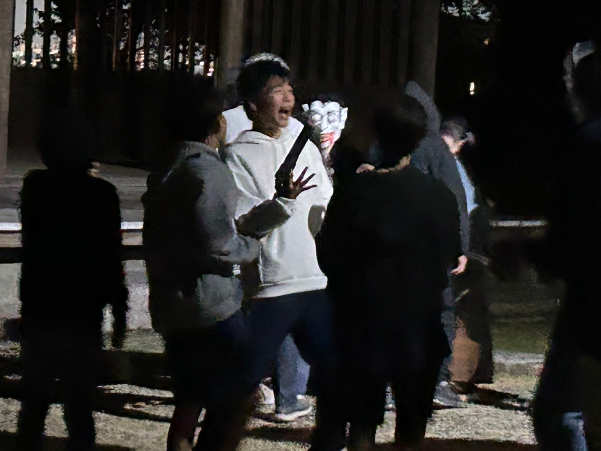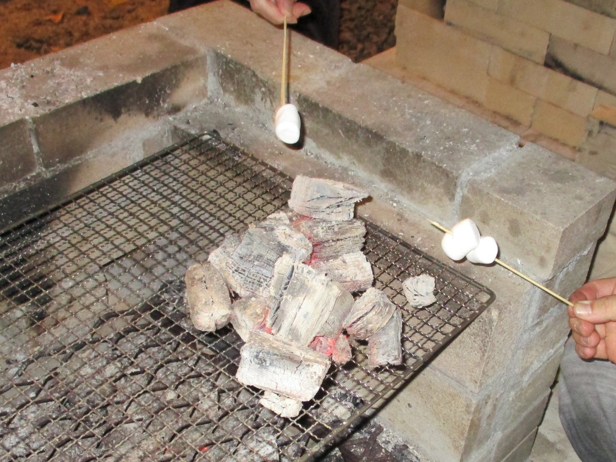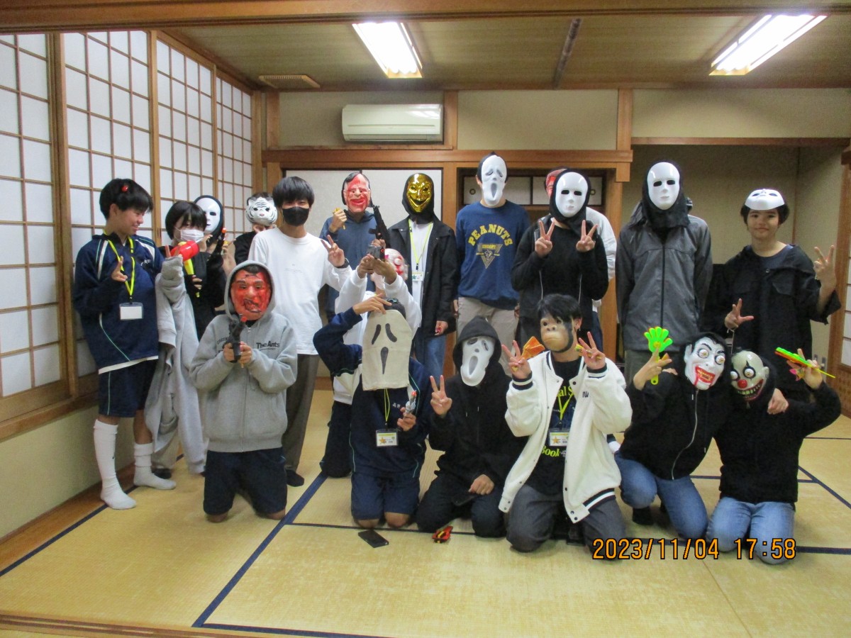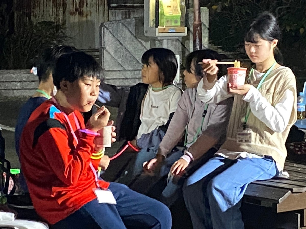 その後は「ジェスチャーゲーム」と「仲間探しゲーム」そして「ビンゴゲーム」です。言葉を話さずにお題をジェスチャーで表現したり、仲間を探したり。ビンゴゲームはワクワクドキドキ!どの景品がもらえるかなぁー。夕食メニューも企画チャレンジャーの考案。バーベキューにピザ、焼きそばです。皆で食べる食事は美味しいですね。そして最後は恒例の度胸だめしと、ほっこりぬくぬくのかまど体験。今年のアドベンチャーハウスは盛りだくさんで、皆の歓声があちこちであがっていました。