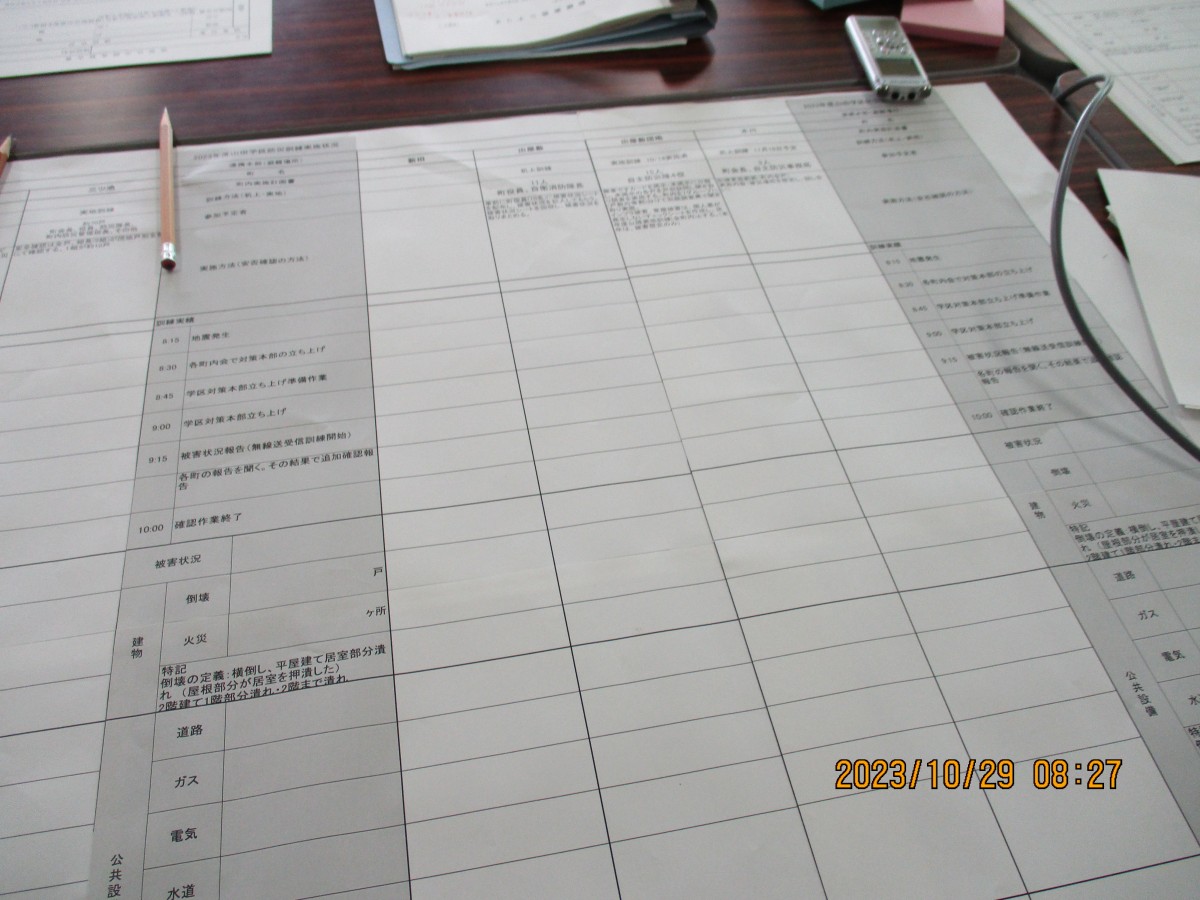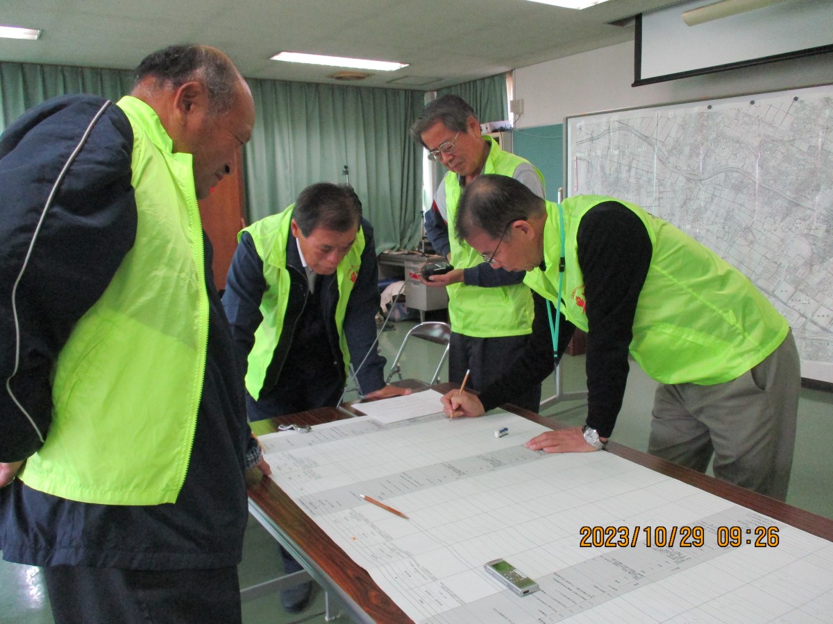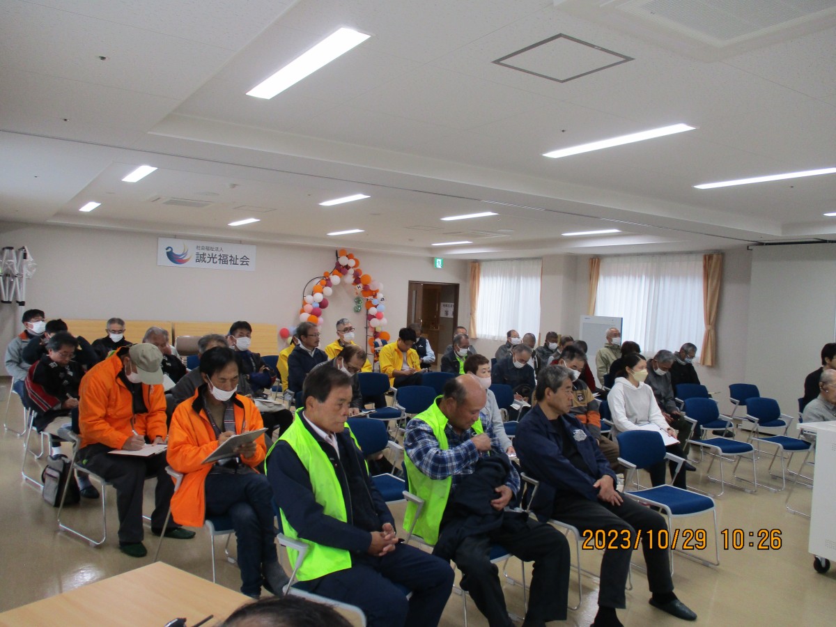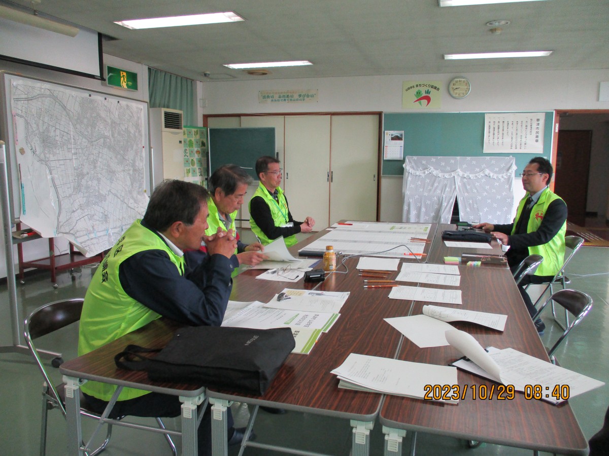 10月29日、震度6強の地震が発生したとの想定で、山田学区防災訓練を行いました。今回は前半に各町内会の対策本部を立ち上げ、被害・安否確認を実施。それを踏まえて『山田学区地区防災計画』に基づく学区対策本部と、各町内会との無線機を使った情報伝達訓練をしました。後半には山田学区の防災に関わっていただいている、関西大学社会安全学部の近藤誠司教授に講演をしていただきました。テーマは「みんなのぼうさい~インクル-シブ防災の輪を広げる~」で、会場となった山田学区防災ふれんどしっぷ協定第1号の「えんゆうの郷」には、各町の町内会長と防災関係者合わせて45名の参加がありました。情報伝達訓練では、各町内会からの被害状況報告を何度か確認する場面や「声が小さい」「早口で聞き取りが出来ない」等、様々な問題がありました。近藤教授の講評では、実施の目的や優先順位を考える事、どの情報も大事だが情報が多すぎるので、最初に「〇〇町 応援求む」とか「〇〇町 人的被害大」など結論(情勢)を先に伝えたほうがよいのではないかというアドバイスをいただきました。高齢化社会でもあり、災害発生時の避難等に特に支援を要する方など、あらゆる「人」を取り残さない「インクル-シブ防災」の輪を広げる取り組みや、防災と福祉にまたがる領域についての講演でした。