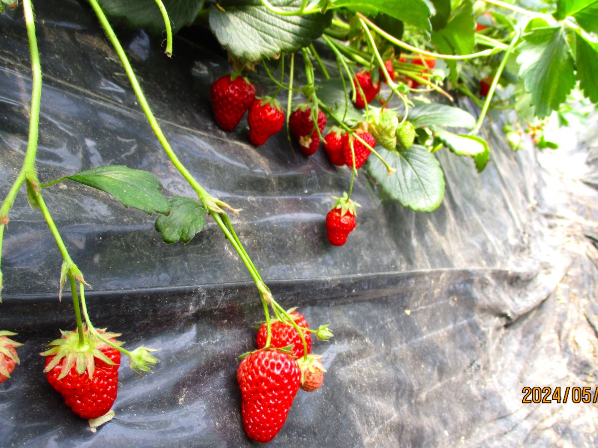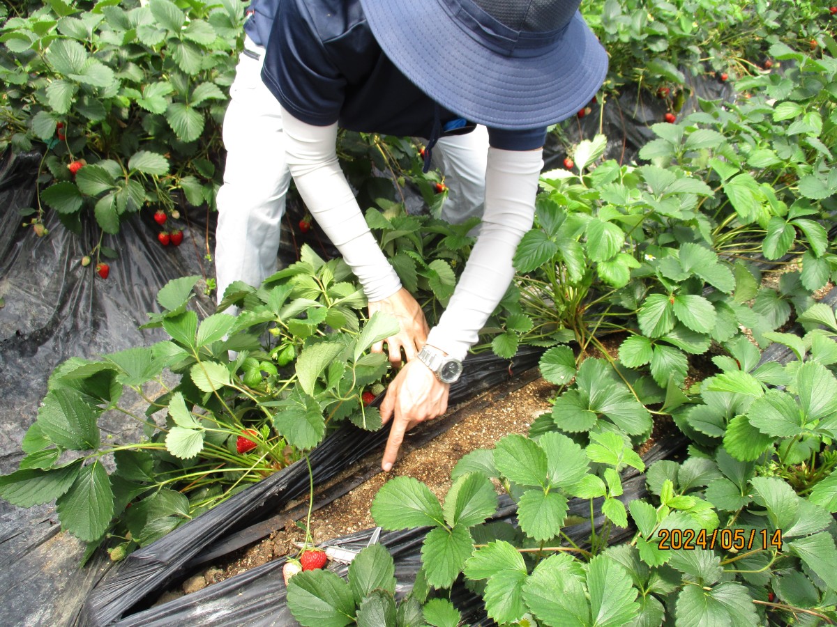 最後に、北山田のいちご農家さんのビニールハウスにお邪魔しました。ヤマミラメンバーからの紹介で、4月のヤマミラ定例会でお話を聞かせてもらったフィオーレいちご園の堀田さんです。車を降りた瞬間、いちごの甘~い香りが漂っていて「いちごだぁ~!」とみんなの顔がほころびました。ここ3か月くらいは最後の収穫と育苗が重なり、お忙しい時期だったのですが、水やりや肥料のやり方、いちごの作り方等とても丁寧に説明いただきました。滋賀県限定の「みおしずく」と「紅ほっぺ」を作られていて、試食させてもらいました。育苗用のビニールハウスも見学させてもらい、苗づくりについてもたくさん教えていただきました。