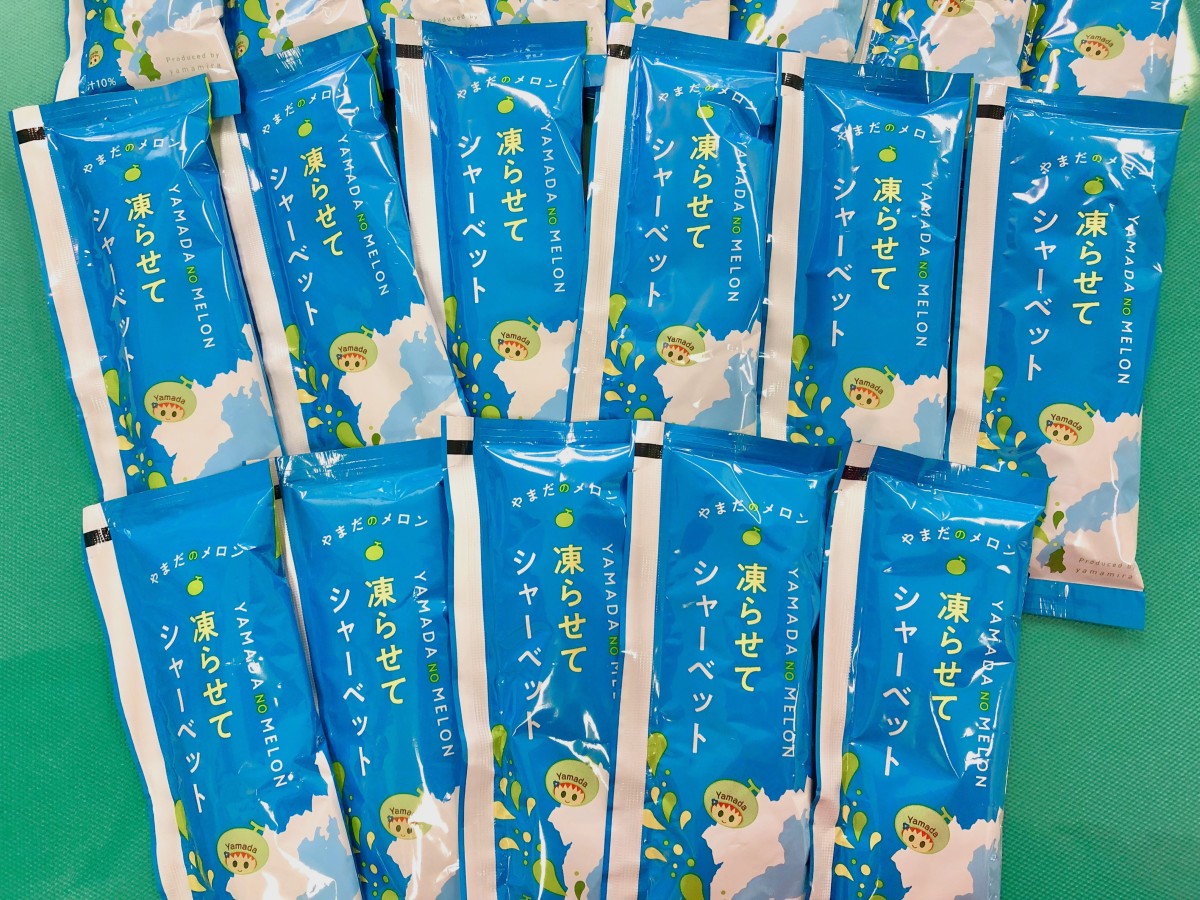 昨年のかわいいカップのメロンシャーベットに続き、今年新たに出来上がった一品「凍らせてシャーベット」。今回もヤマミラが星野科学株式会社に依頼し、試行錯誤を重ねて完成しました!山田で収穫されたメロンから誕生したこのシャーベットは、メロン本来のうまみを凝縮し、やまだのメロンを味わえるさっぱりとした食べやすいシャーベットに仕上がりました。