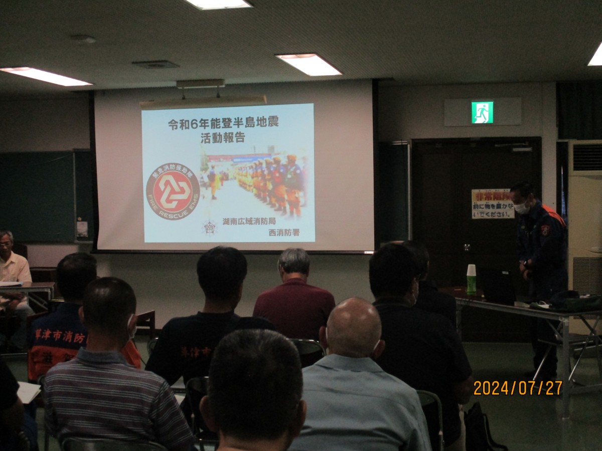 7月27日湖南広域消防局西消防署の櫻本さんを講師に招いて「緊急消防援助隊から見た能登半島地震」と題しまして開催しました。