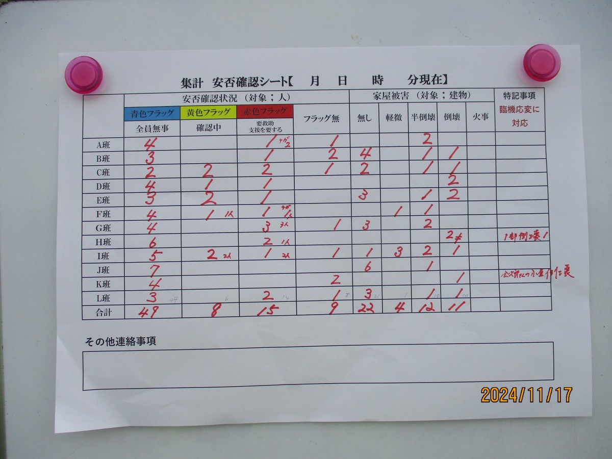 との話でした。今日の訓練が各町の防災体制のレベルアップにつながると確信しています。参加された皆さまお疲れ様でした。