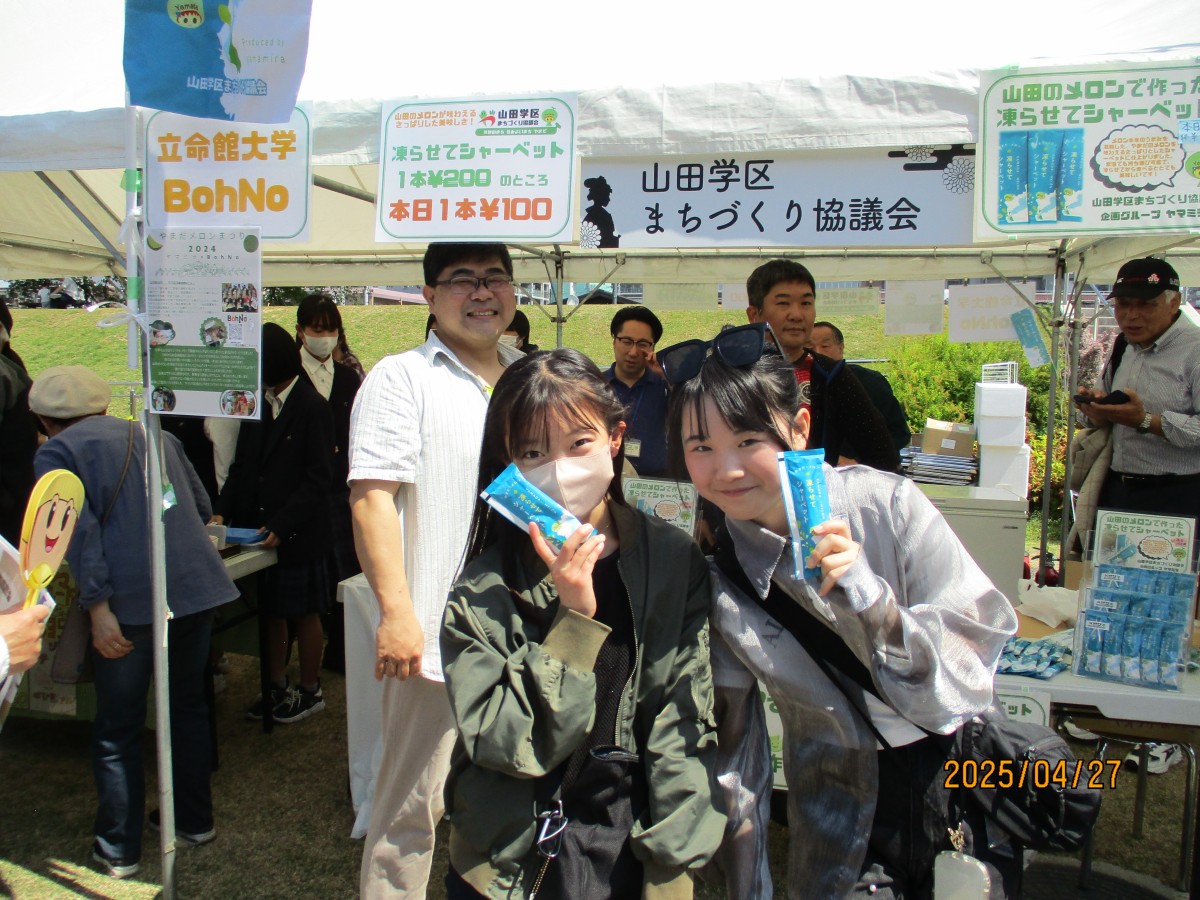 4月27日、立命館大学活動団体 BohNoと一緒に、はじめて宿場まつりで凍らせてシャーベットを出店しました。