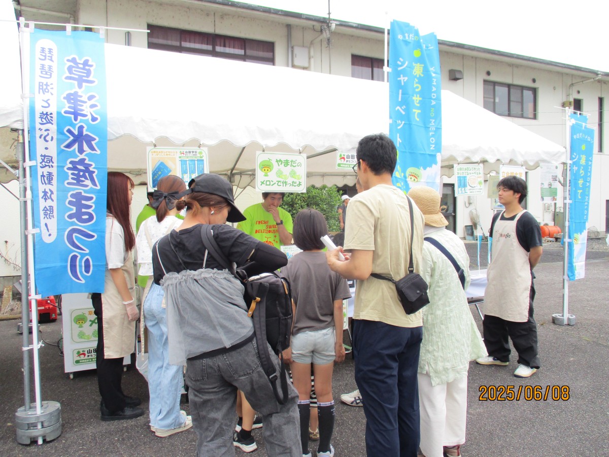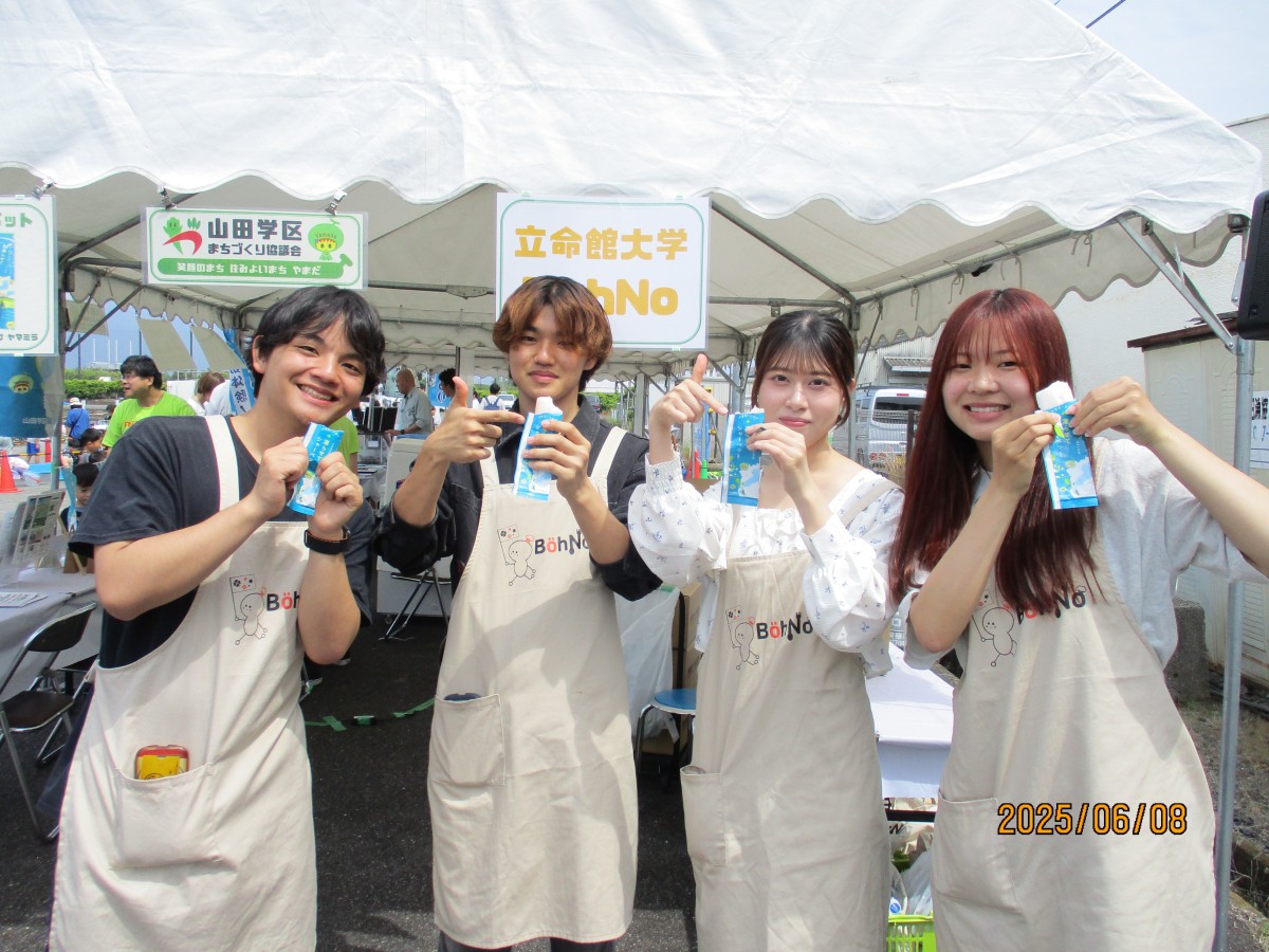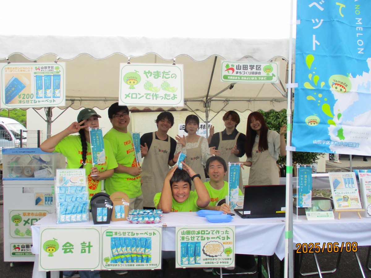 山田学区まちづくり協議会からは、ヤマミラと立命館大学BohNoが一緒に「凍らせてシャーベット」を出店しました。日差しで暑い時間もあり、その場ですぐ食べられる冷凍シャーベットが人気でした。