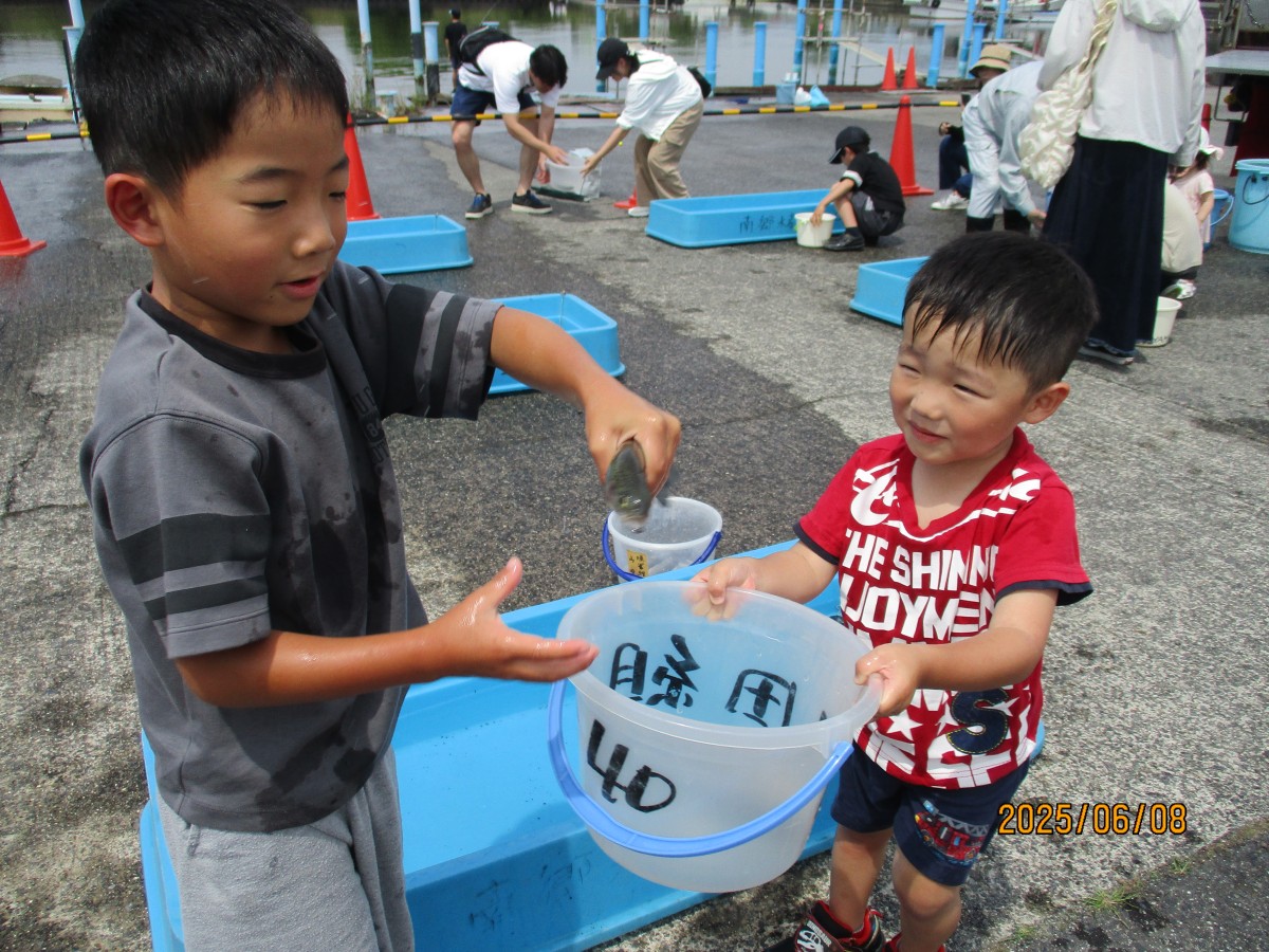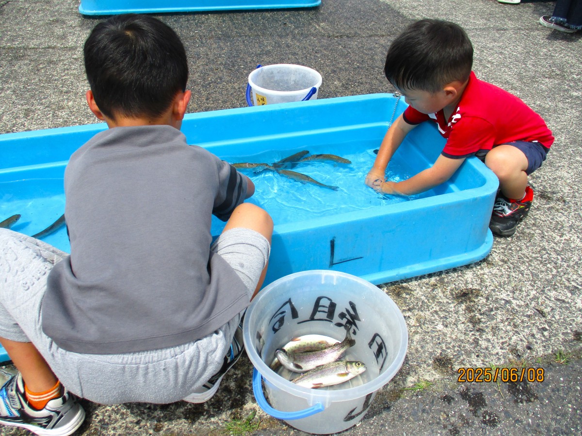 その他、ニジマスのつかみ取りや魚の大きさを競う釣り大会、漁船に乗って琵琶湖へ出かけての稚魚の放流など、参加した子どもたちは目を輝かせて夢中で体験していました。