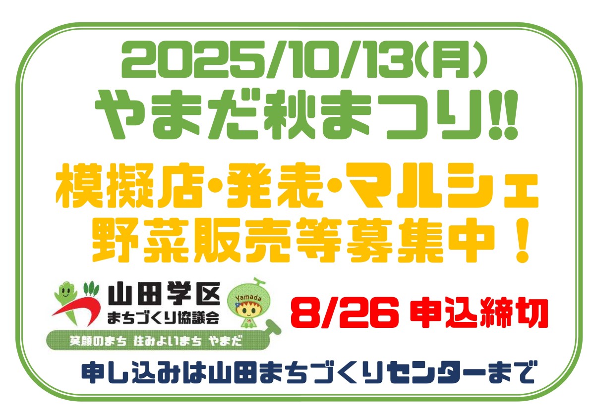2025やまだ秋まつり 各種募集中です!(締切8/26)