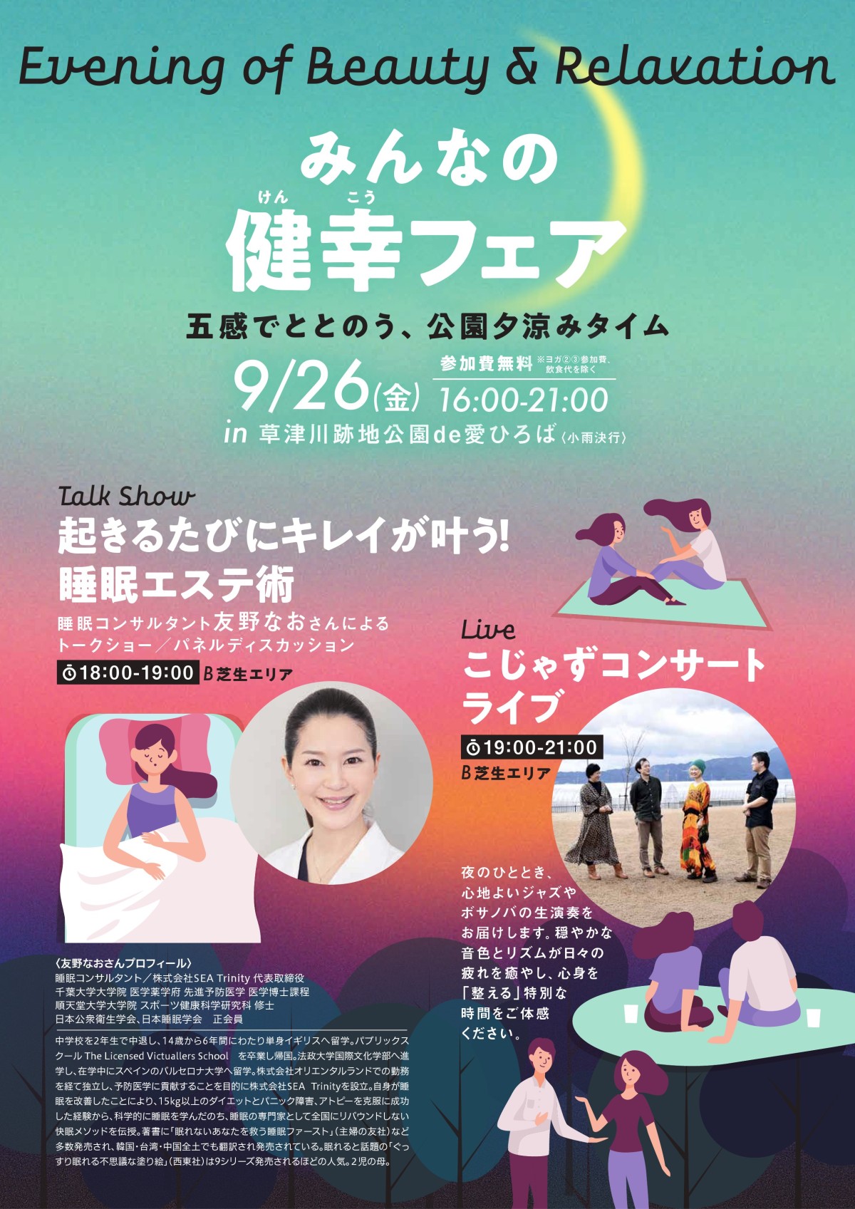 専門家によるトークショーやコンサート、ヨガ体験など、日常生活で健康に役立つ知識を楽しく学ぶイベントです!