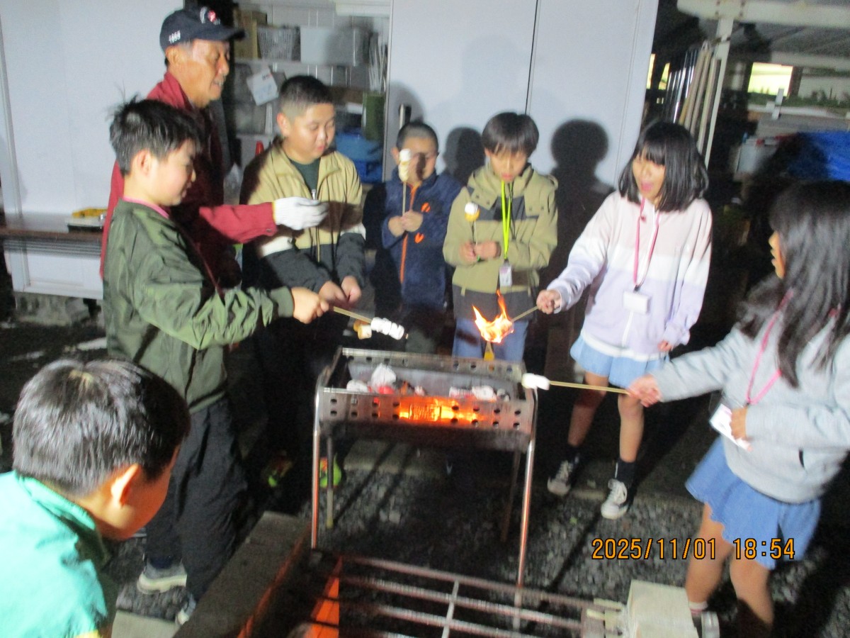 11月1日(土)中学生の企画グループ、Yamada Challenger Club、略して「YCC」8名と度胸試しサポーターの3名、4~6年の小学生23名が集合し、やまだアドベンチャーハウスを開催しました。今年の企画5項目の内容になりました。①「山田まちづくりセンターでゲーム!」②「ミニ運動会」③夕食に「BBQ」④「度胸試し」⑤「かまど体験」と盛り沢山です。ゲーム内容、景品、ミニ運動会の競技、BBQ、かまど体験のメニュー全てYCCメンバーが数回の企画会議で考え、準備をしました。前日の天気は大雨だったので開催当日の天候を心配していましたが翌朝は雨が上がりました。開催当日は9:00受付、参加者の小学生はワクワクで朝から元気いっぱいでした。午前中は山田まちづくりセンター(以後、まちセン)で、毎年恒例の大パネルと共に集合写真撮影、その後は、狼ゲーム、ビンゴ大会!景品選びをして、終始大盛り上がりでした。和室に移動し、みんなでお昼ご飯のお弁当を食べました。お昼からはミニ運動会!公用バスで13:00に出発➡山田小学校 体育館へ移動です。YCCメンバーより運動会競技の説明、準備運動にラジオ体操をしました。各チームに分かれて・玉入れ・的当て・五色綱引き、休憩をはさんで・障害物競走・ここからは個人戦で、・借り物(人)競争・パン食い競争をしました。熱戦で個々熱い思いもある中、怪我無く競技も終了して、順位ごとに景品があり、小学生達は喜んでいました。16:30、公用バスでまちセンへ出発。まちセンでは、夕食のBBQ!学区の協力者さんの力をお借りしてコンロ5台に炭の火起こしをし、食材の準備をして下さっていました。お肉、焼き鳥、アヒージョ、じゃがバター、フランクフルト、まるごと玉ねぎ、焼き芋。BBQもひと段落し、「度胸試し」YCCメンバーは、おどかし用のコスチュームに変身し山田八幡宮へ向かいました。小学生達は班に分かれ、時差で神社へ。並行し、「かまど体験」マシュマロを炙って、トロトロマシュマロを美味しそうに食べていました。最後は閉会式をしました。今年の中学生が次世代を担う頼もしい姿勢を小学生に影響を与えてくれました。また、早朝から夜に至るまでお手伝いいただいた地域の皆さまのおかげで開催できました。ありがとうございました。