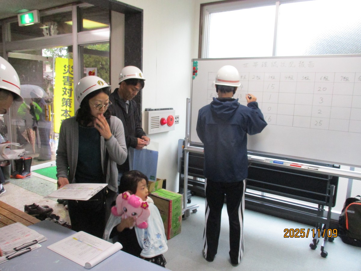 訓練を通しての講評ではいち早く安否の否の確認をすることが大切なので、情報収集する時間を意識した訓練やスマートフォンの利用や、自転車を使用する方法を取り入れる提案がありました。今後も防災の取組をまちづくりの一環にしてほしいとの話でした。
