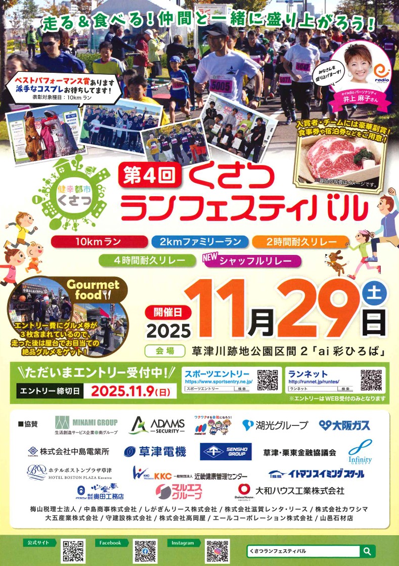 11月29日(土)に草津川跡地公園区間2「ai彩ひろば」で開催されます『くさつランフェスティバル』にて、凍らせてシャーベットを販売することになりましたので、お知らせします。