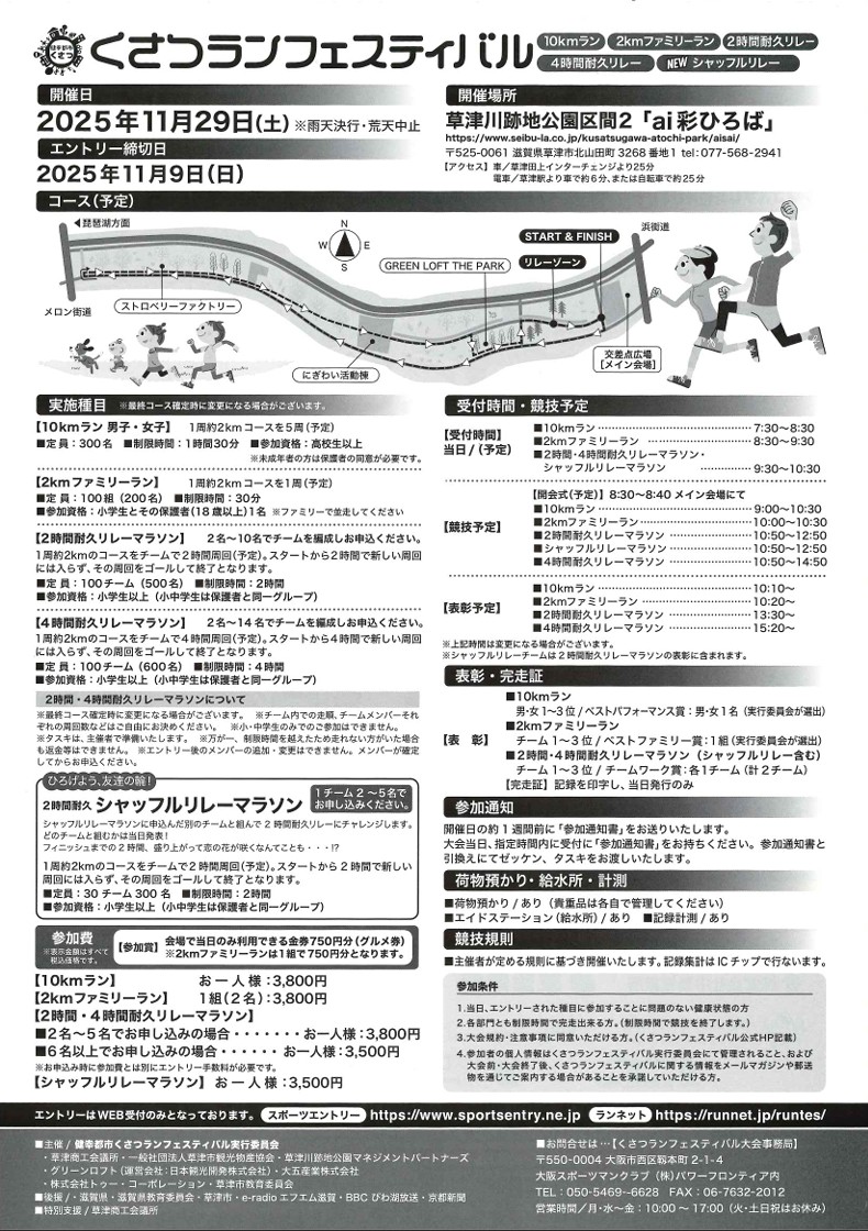 10kmラン/2kmファミリーラン/2時間耐久リレー/4時間耐久リレー/シャッフルリレー