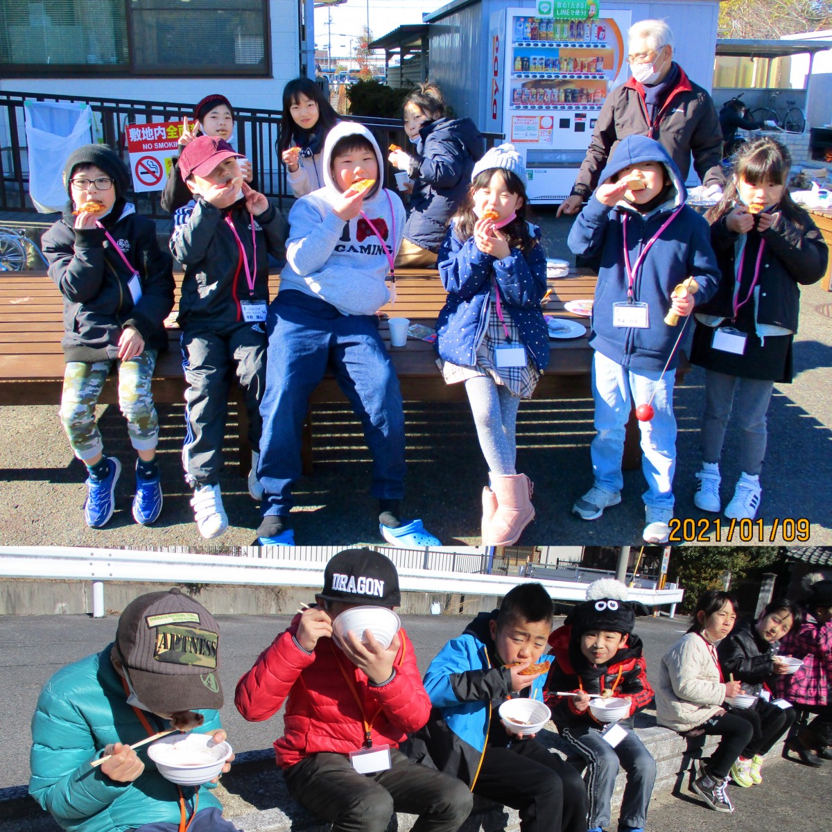 また、やまだアドベンチャーハウスで5、6年生が作ったかまどを使って、ピザとお餅(ぜんざい用)を焼いて食べました。特にピザ窯で焼いたピザが大好評で、カマドも含めて普段から使える貸出制度を希望する声が上がっていました。