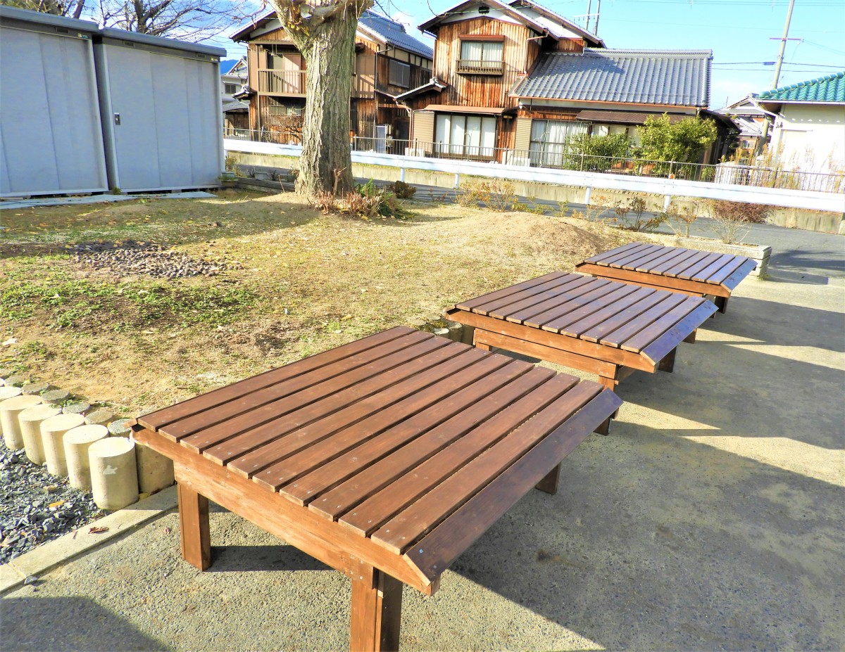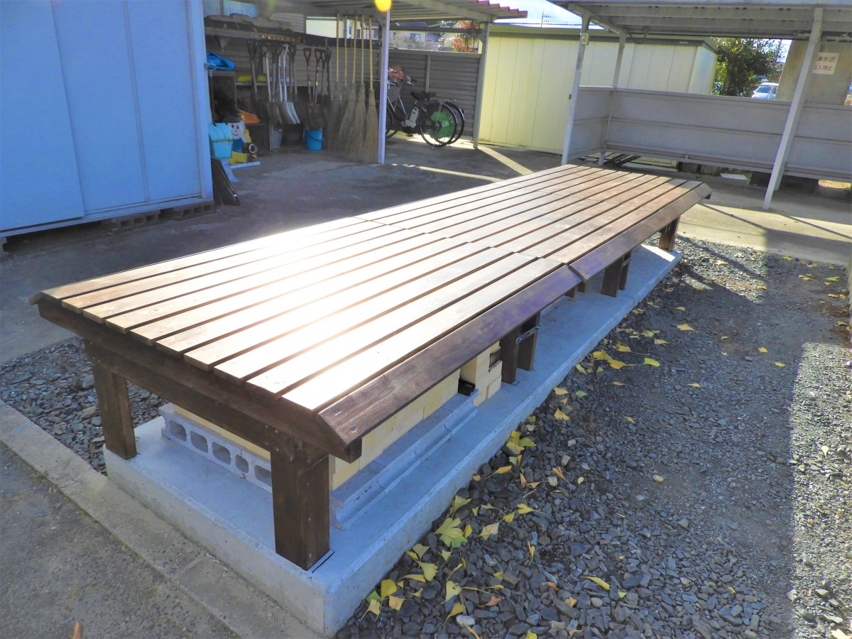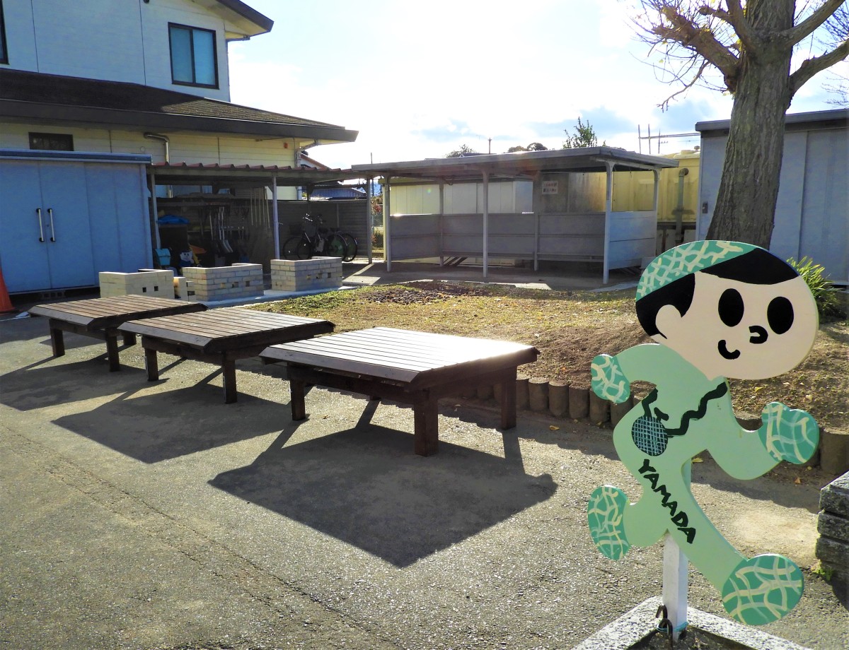 かまどベンチ完成!!! 「2020やまだアドベンチャーハウス」で小学生と地域の皆さんが手作りしたかまどがベンチになりました。 かまど2基にピザ窯1基、合計3基のかまどの上にそれぞれベンチがのっています。 普段ベンチは結束していますが、外れる場合もあるのでご注意ください。 ベンチを軽くするため薄い板で作っていますので、上に乗って飛び跳ねたり、走り回らないようお願いします。 腰をかけての休憩にご利用ください。
