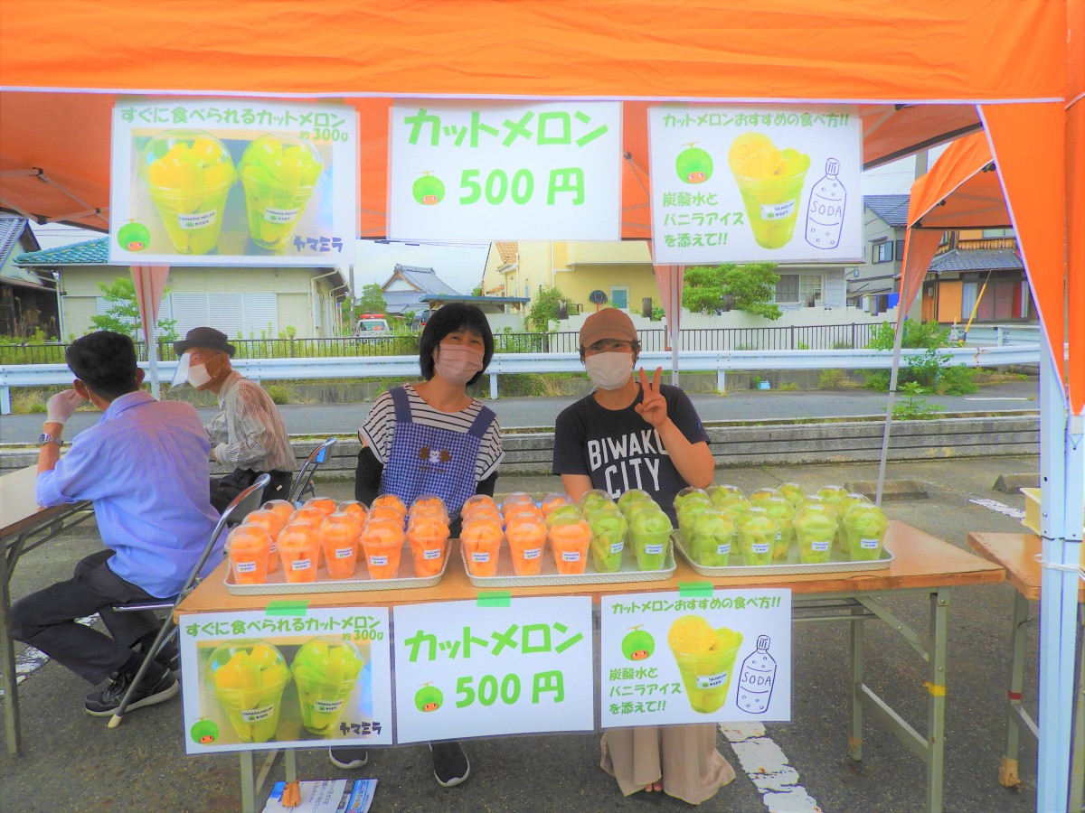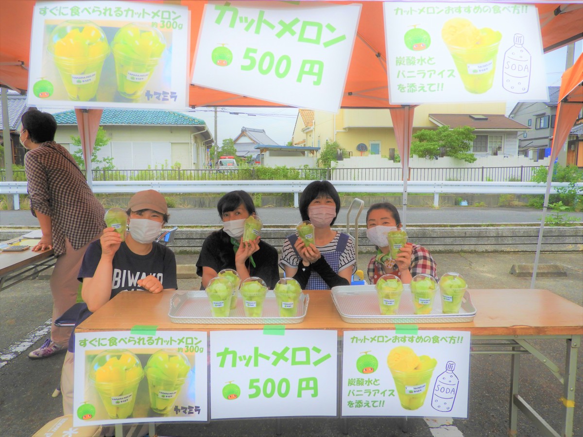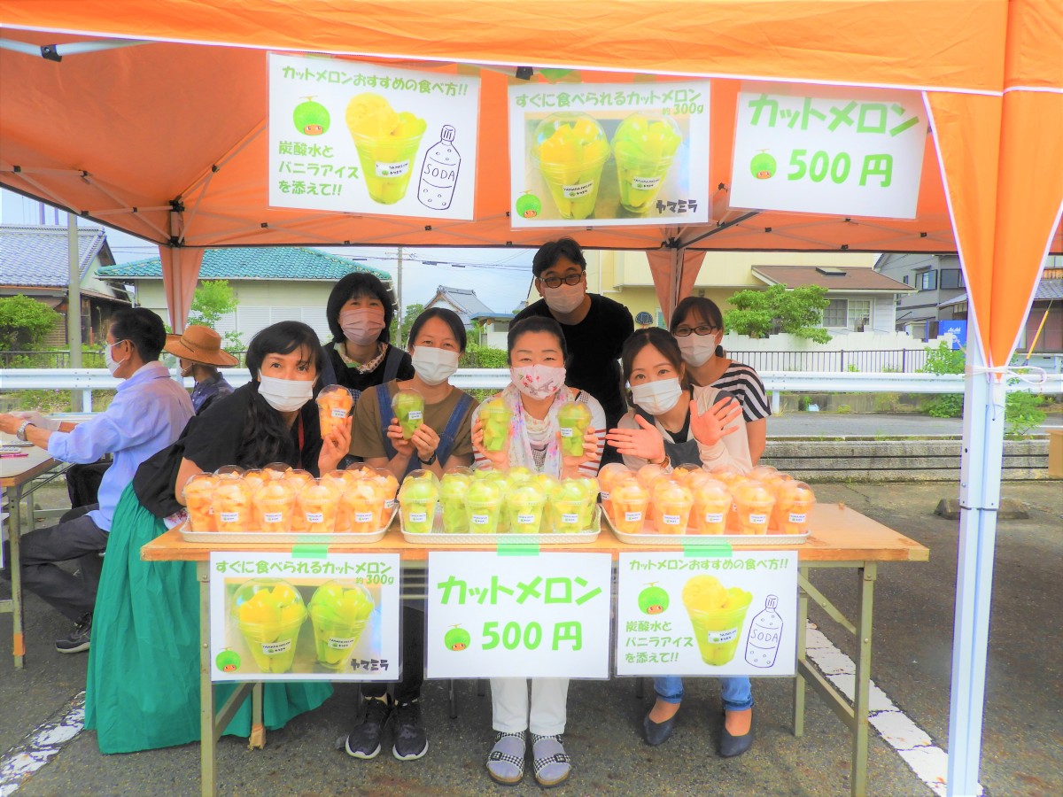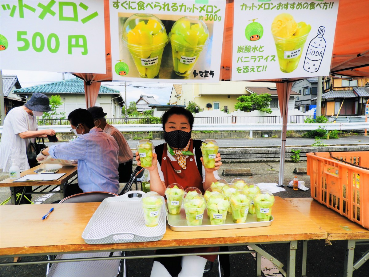 まち協主催のメロン販売で、ヤマミラ食チームがカットメロン販売をしました!!