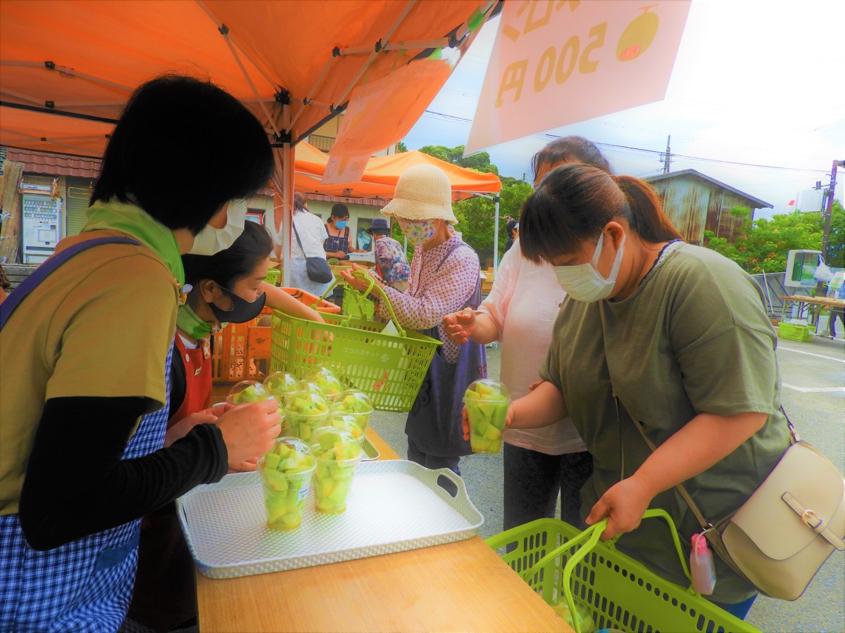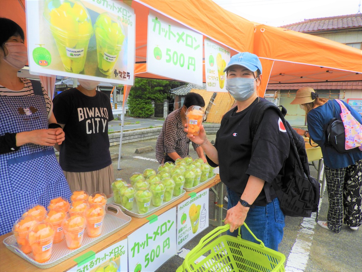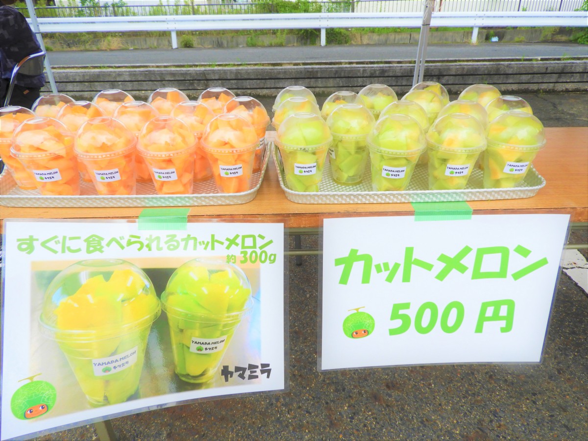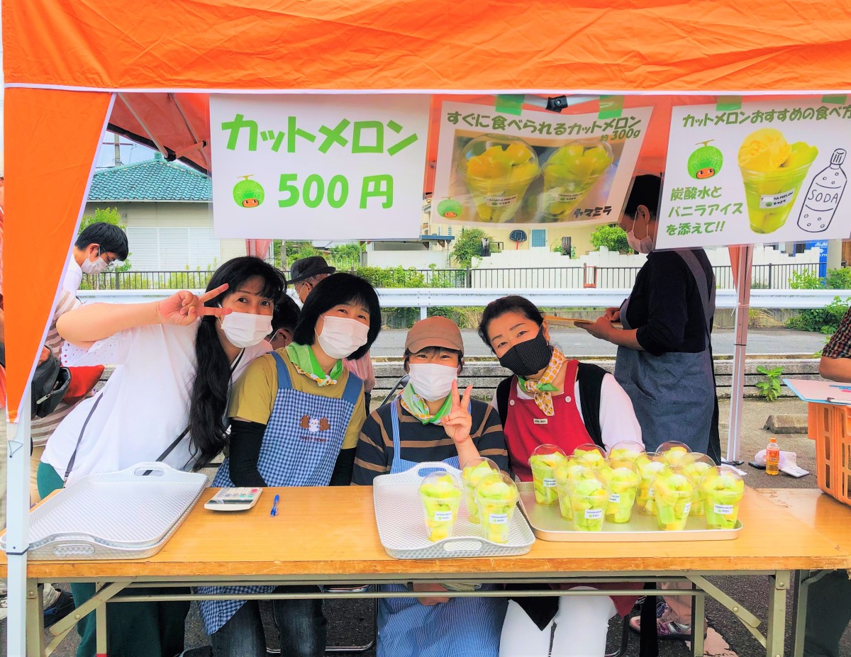 まち協主催のメロン販売で、ヤマミラ食チームがカットメロン販売をしました!!
