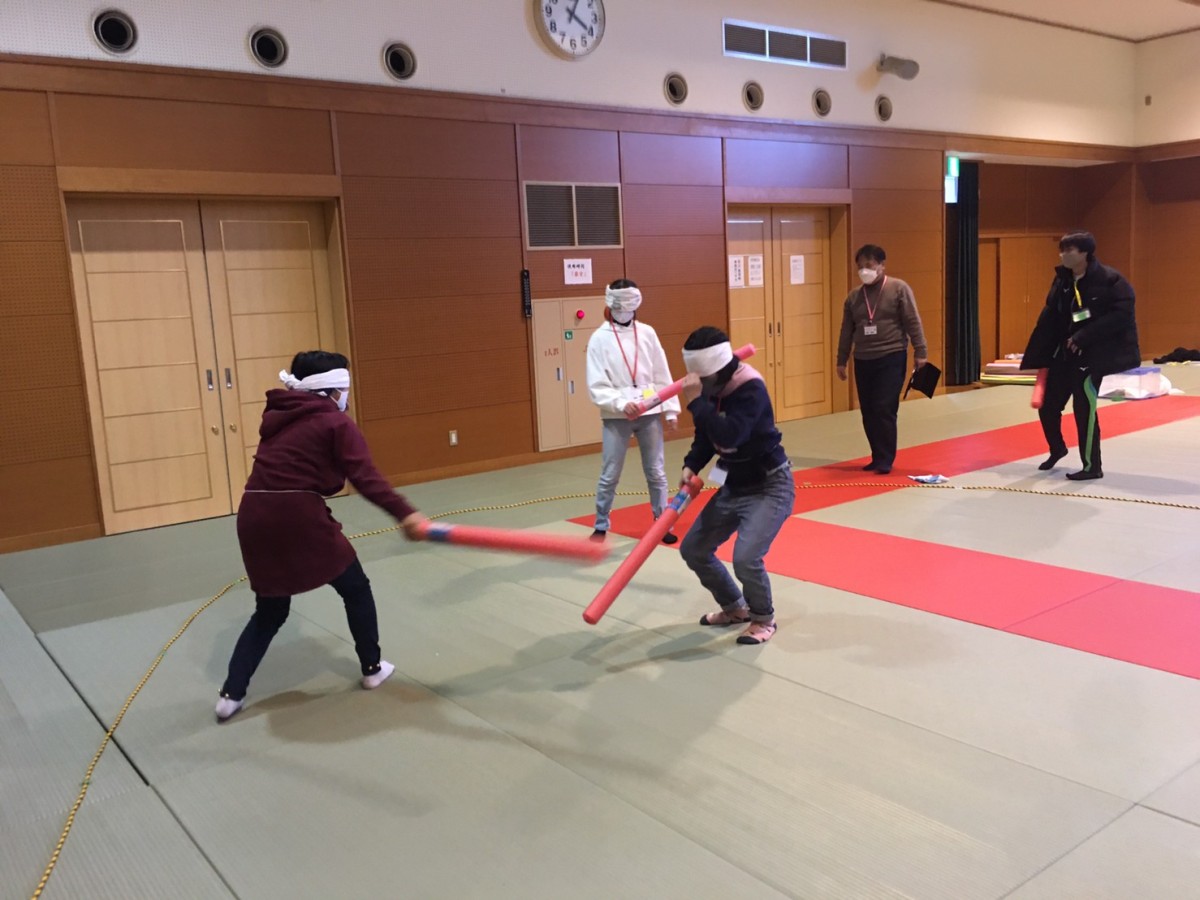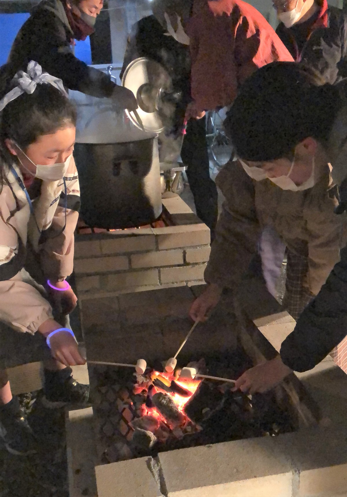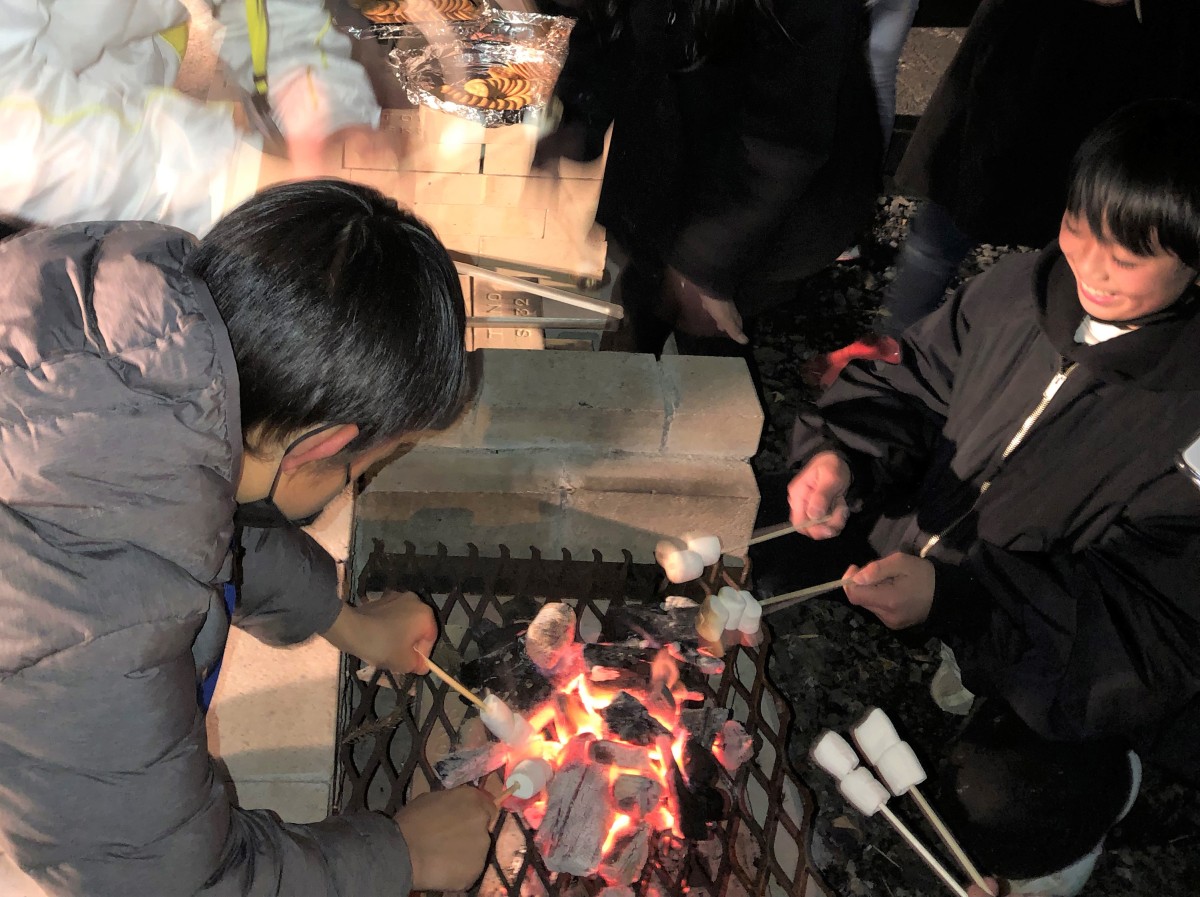 全員おにごっこ、人がコマになる巨大すごろく、目隠しチャンバラ、真冬の度胸試し、かまど体験など盛りだくさんの内容で、小学生も思い出に残るイベントになったようです。感想アンケートから、自分も中学生になったらサポーターで参加したいという思いを持っている小学生がたくさんいて嬉しい限りです。