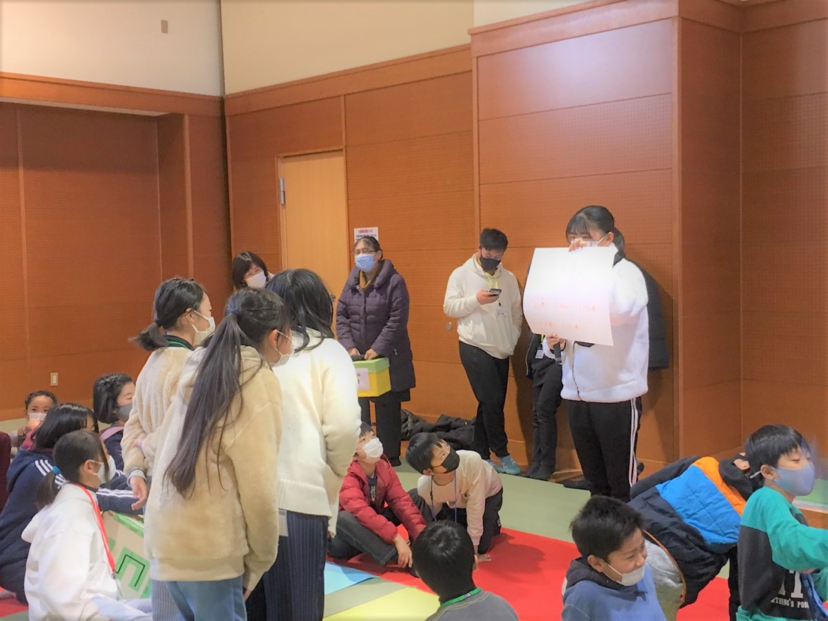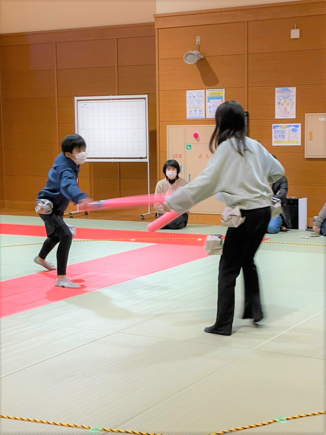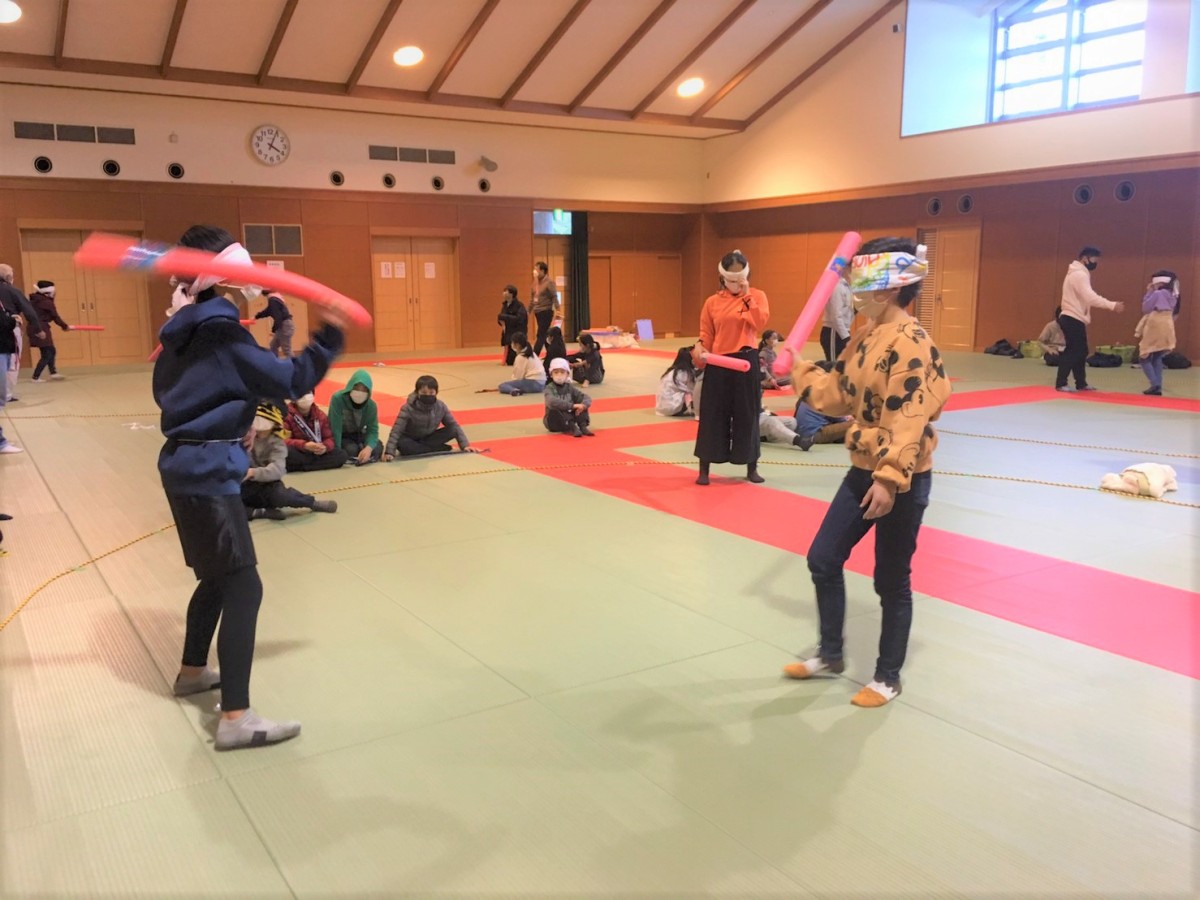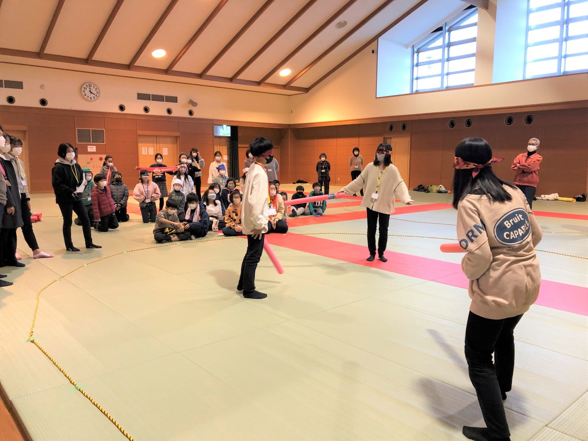 全員おにごっこ、人がコマになる巨大すごろく、目隠しチャンバラ、真冬の度胸試し、かまど体験など盛りだくさんの内容で、小学生も思い出に残るイベントになったようです。感想アンケートから、自分も中学生になったらサポーターで参加したいという思いを持っている小学生がたくさんいて嬉しい限りです。