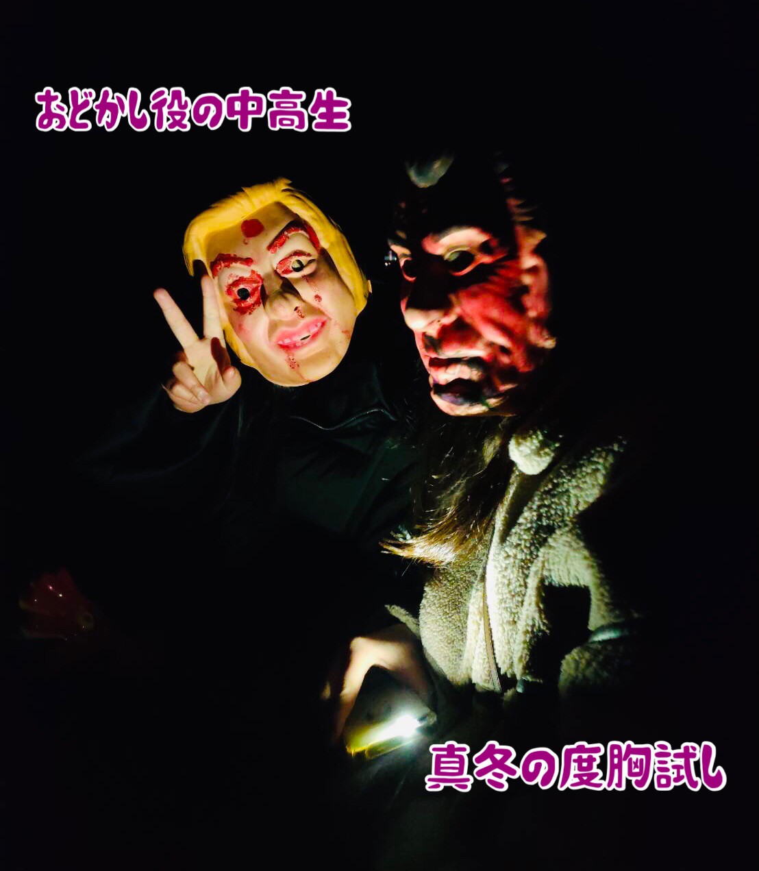 脅かし役の中高生は凍えながらもがんばってくれました!!真冬でもやはり度胸試しは大人気で、小学生もテンションMAXでした