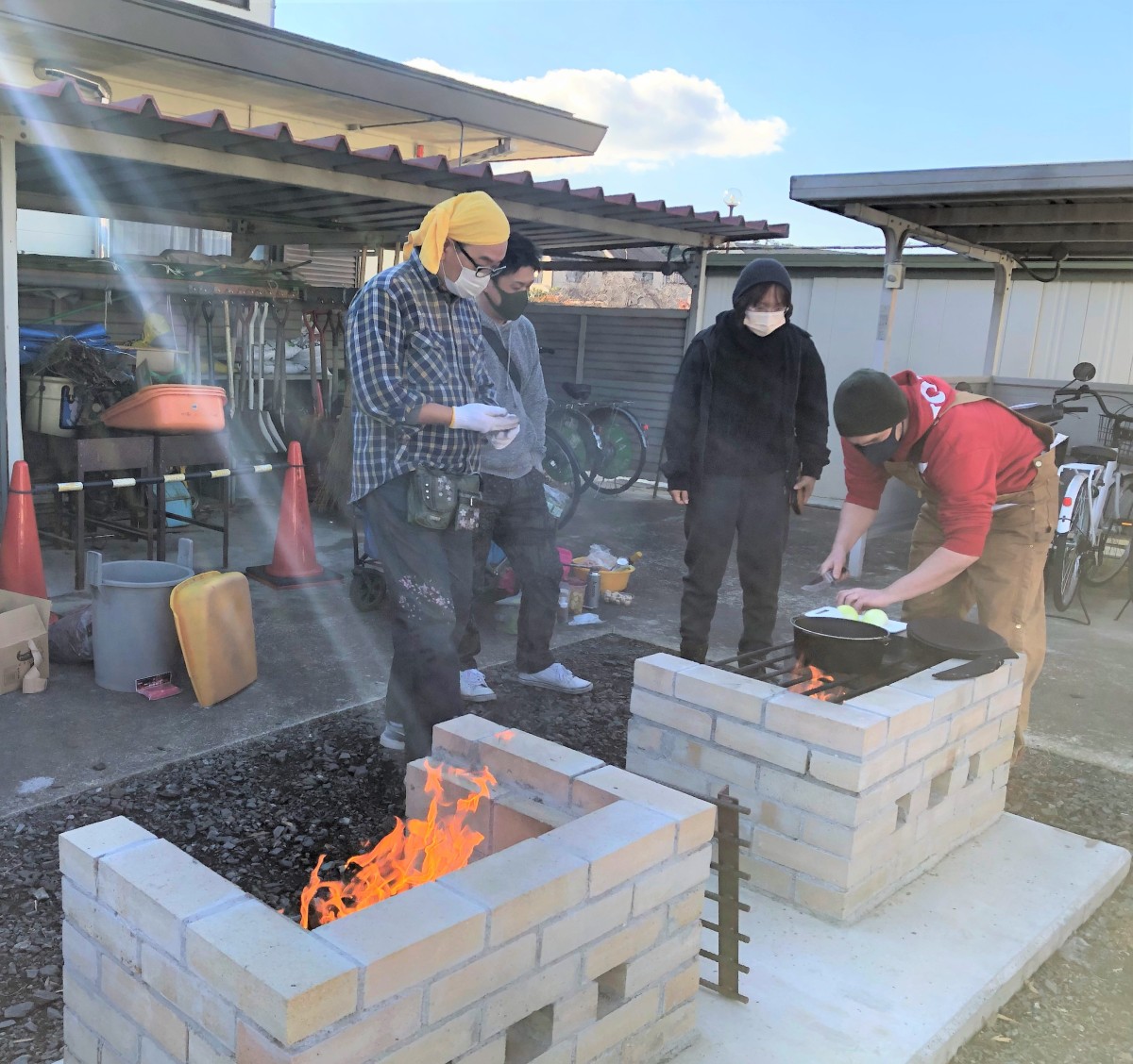 まちづくりセンターのカマドで料理をしました。焼き具合とか心配していたけど、全然大丈夫でした。今回は、ビール缶チキンとダッチオーブンの白ワインのレシピを選びました。みんな美味しいと言うてくれたので嬉しいです。樫根さんが作ったアヒージョと合いましたので良かったです。また機会があればみんなと一緒に何かしたいです。