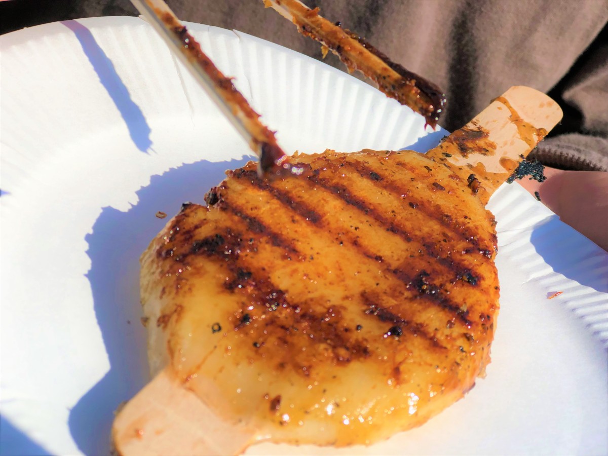 初めて食べるチキン料理に、「うまい!これはうまい!」と皆さん大絶賛でした。また、食リーダー樫根さんによるアヒージョも大好評!エビ、ホタテやタコなど魚介のうまみがたっぷり染み出たにんにくオイルに、旬のお野菜がたくさん入り、一緒に食べるバケットも最高でした!