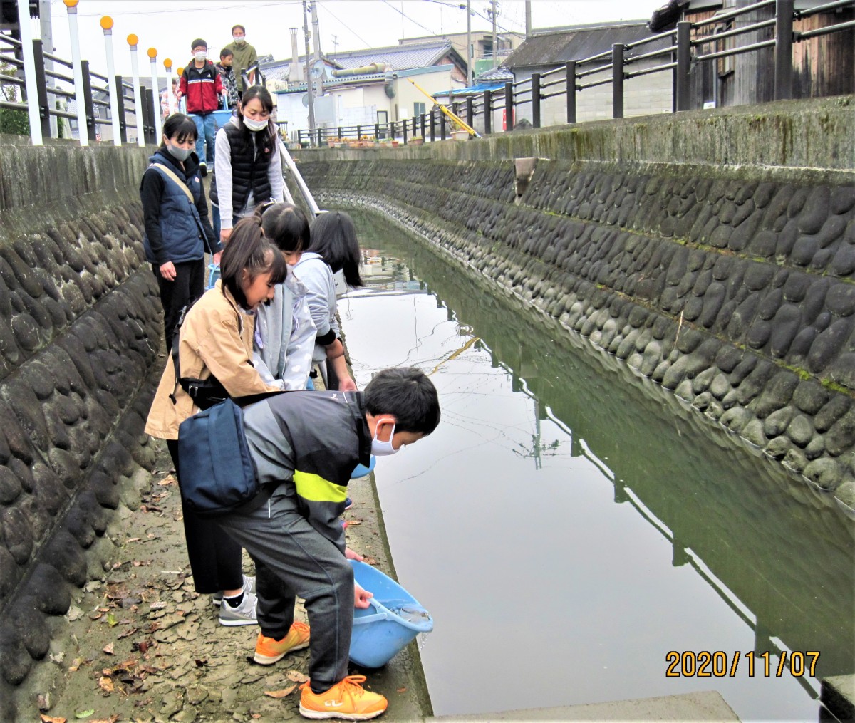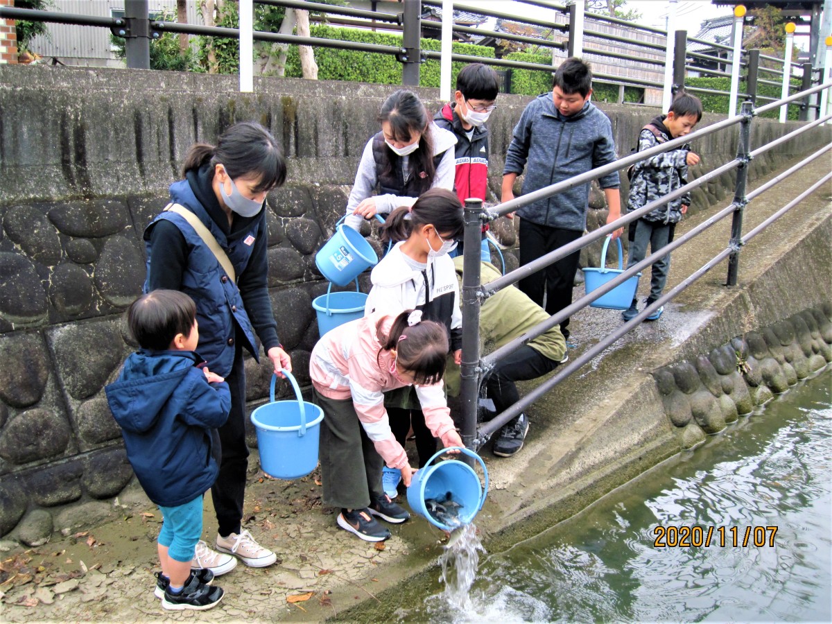 不動浜ふるさと環境を守る会は、11月7日に生き物観察会と魚の放流を行いました![]()