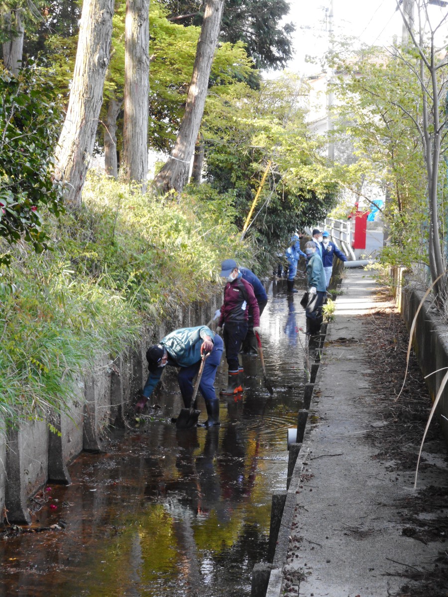 大市から大宮若松神社までの町内を流れる用水路の掃除を行いました。