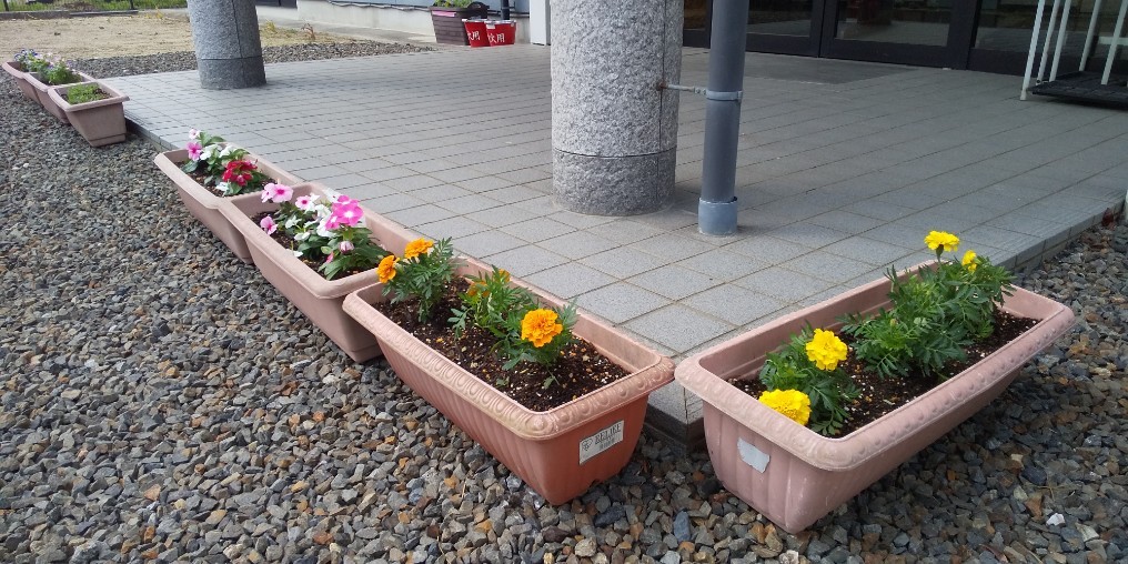 先日、五条ふれあい会館前にお花を植えられました。定期的に散水もされています。