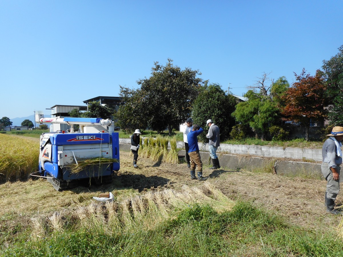 残暑が厳しい中、町内会の役員で稲刈りのお手伝いをしました。
