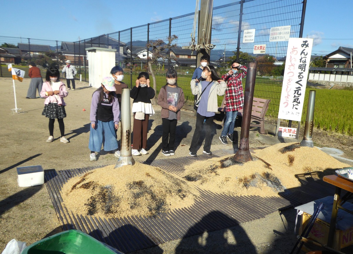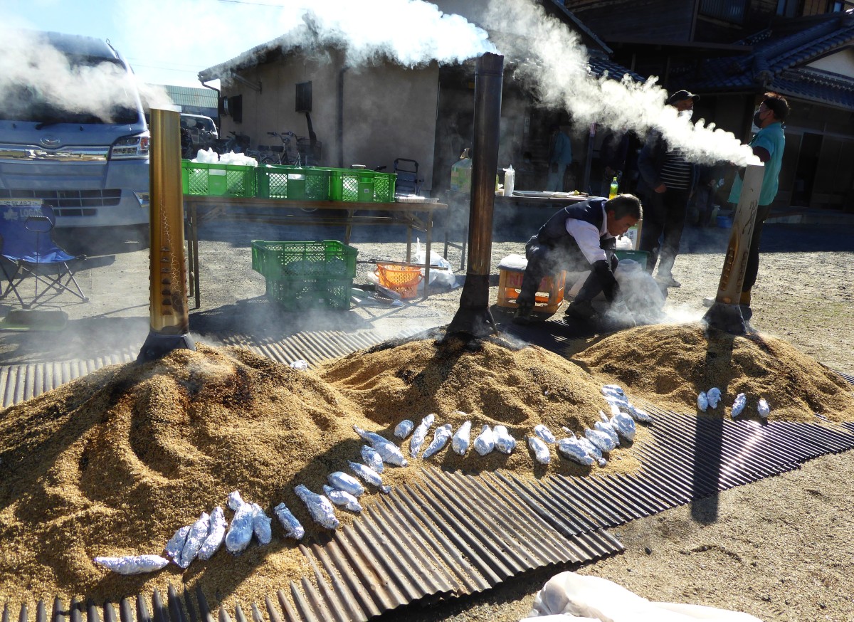 もみ殻で焼き芋を作ります