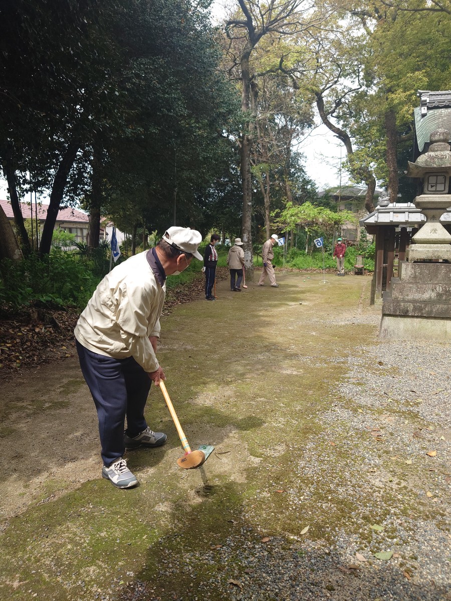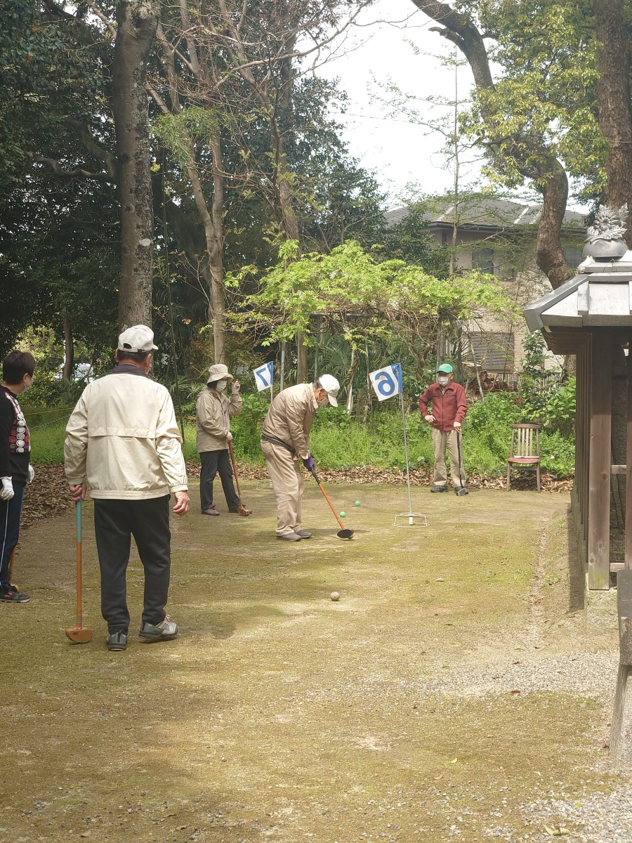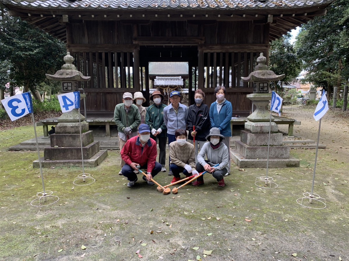 毎週火曜日と土曜日の午前中に町内の有志メンバーが山田正八幡宮に集まって、グランドゴルフをされています。