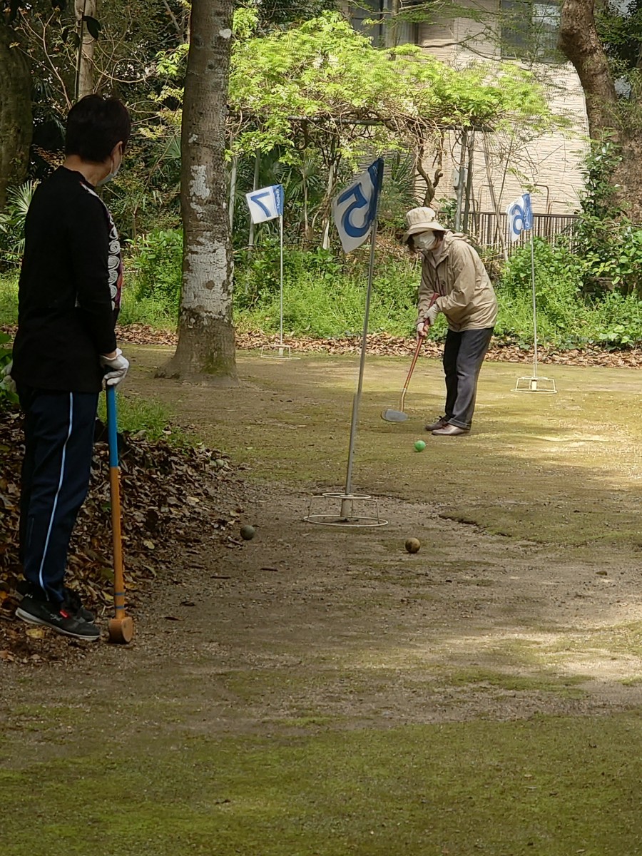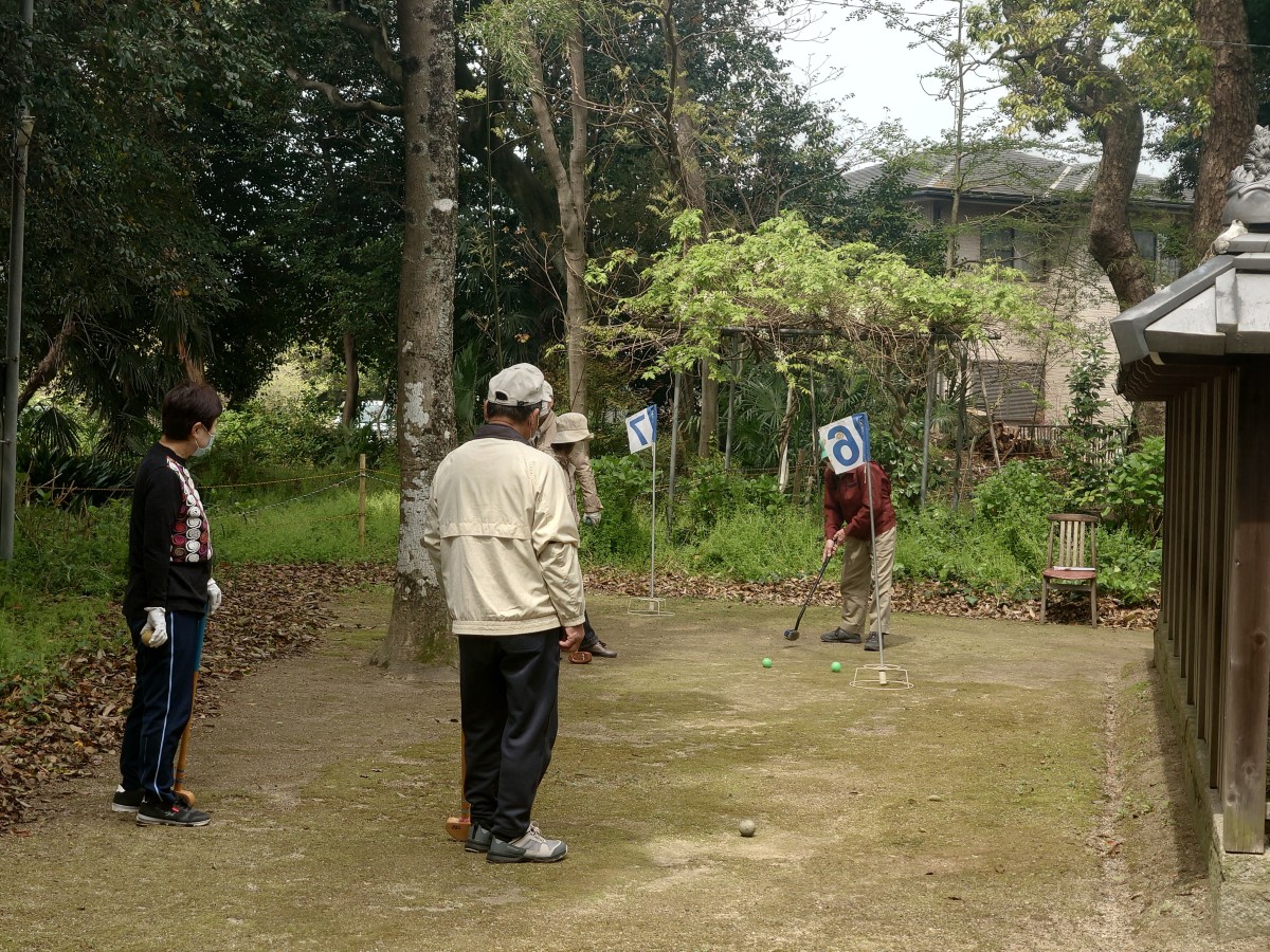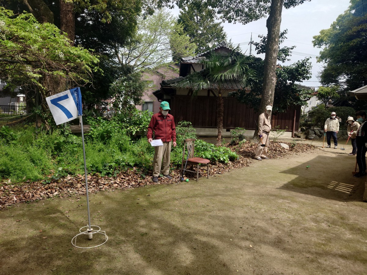 自分の健康の為に参加している方、山田学区の大会に向けて腕を磨く方など各自の目的は様々ですが、ゲームが始まると皆さん真剣そのもので、普段の様子からは想像できない気迫を感じました。とはいえ、上手くボールが運べて思わず歓声が上がったり、思ってもみなかったところにボールが転がりがっかりしたり、「ナイスショット!」と声を掛け合ったりと、皆さん和気あいあいとプレイされていました。