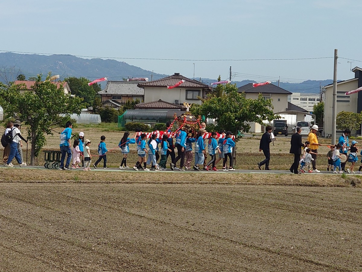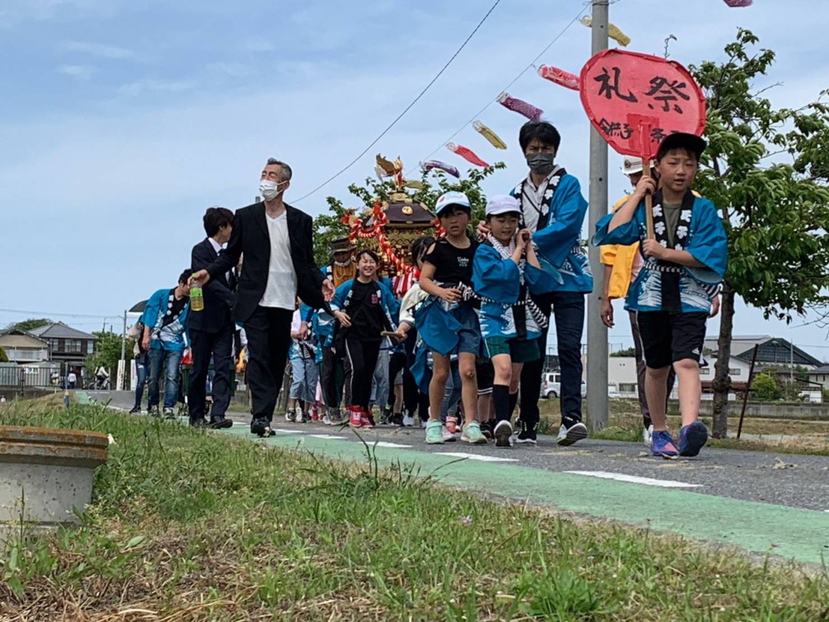 5月3日、子供会による神輿巡行が3年ぶりに行われました。