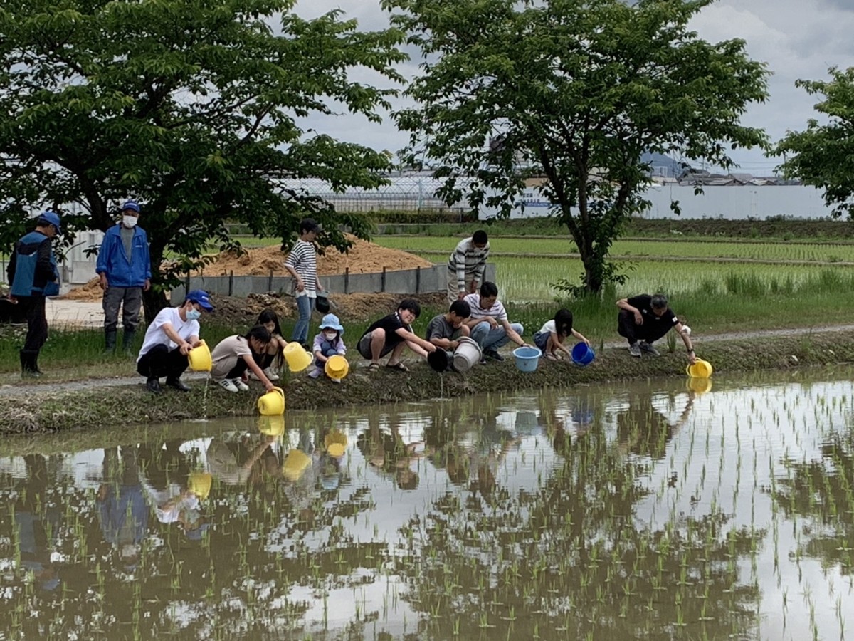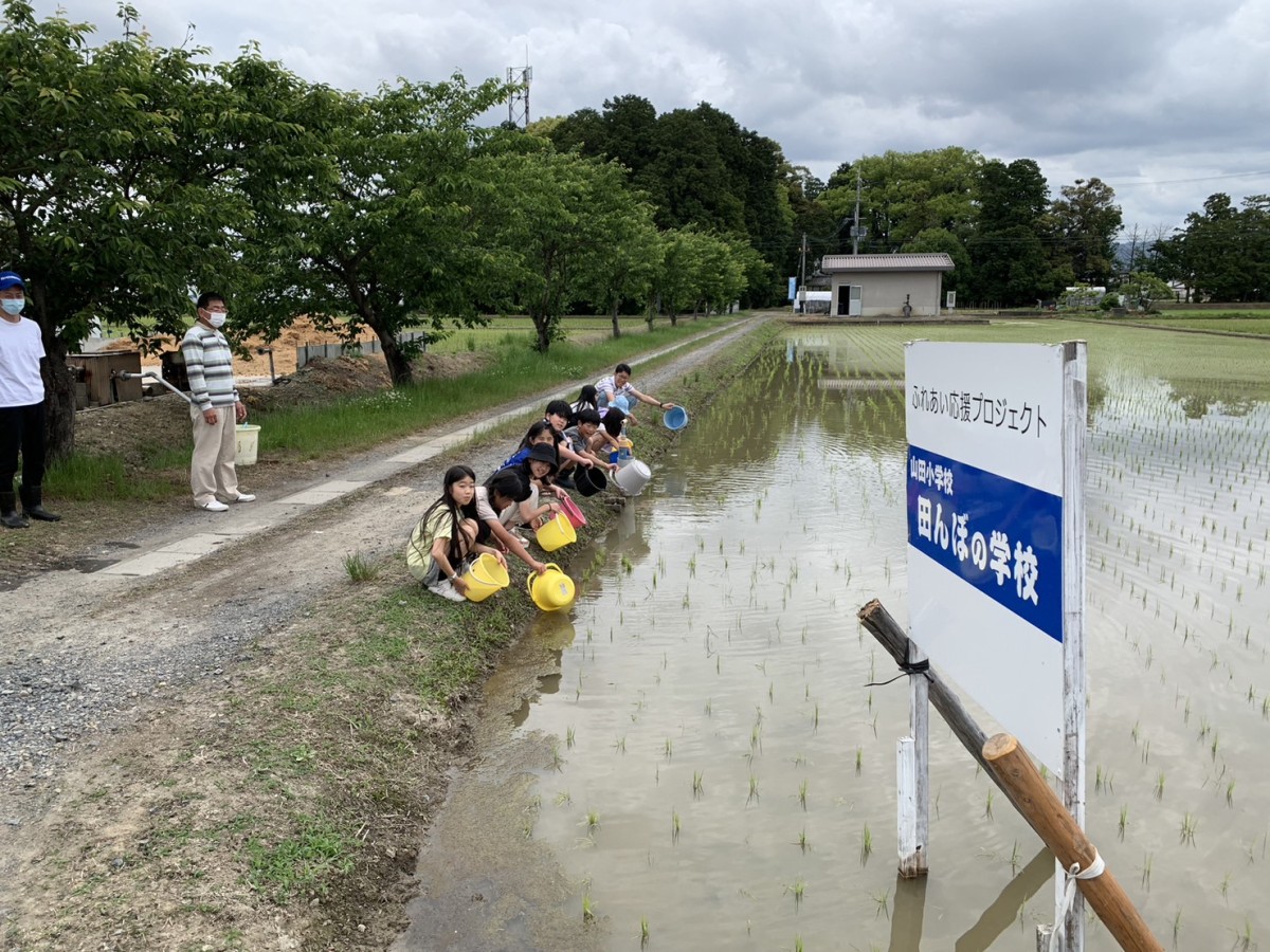 先日、山田小学校の5年生が体験した『田んぼの学校』で使用した田んぼに5万匹の稚魚を放し飼いにします。