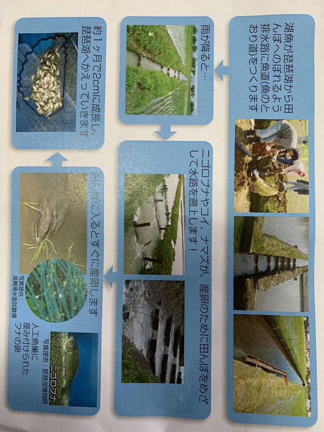 『ふるさと環境』メンバーとJAの職員さんから、約1ヶ月後の7月2日に琵琶湖に向かって放流するまでの間に、約2㎝程度に成長する。と説明を受けました。
