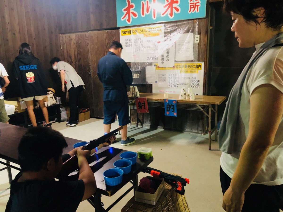 長蛇の列の子供会ゲームコーナー!射的にすごい集中力!