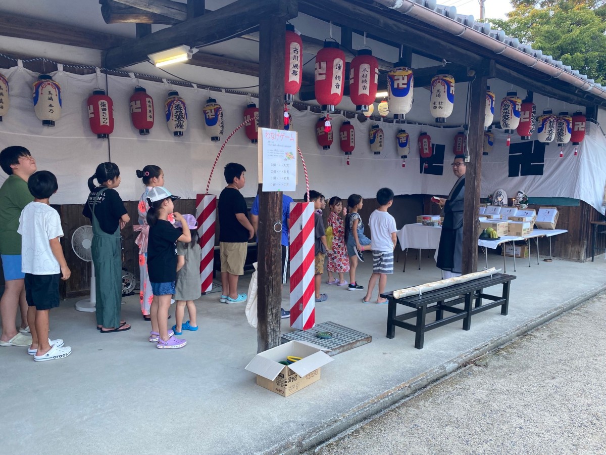 地域方々もお参りから来てくださり、おさがりのスイカを一緒に食べたり、子どもたちと楽しく会話をして過ごす姿が印象的でした。