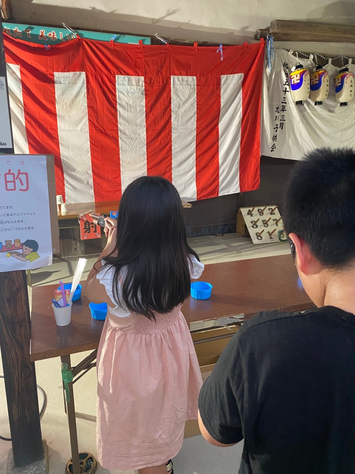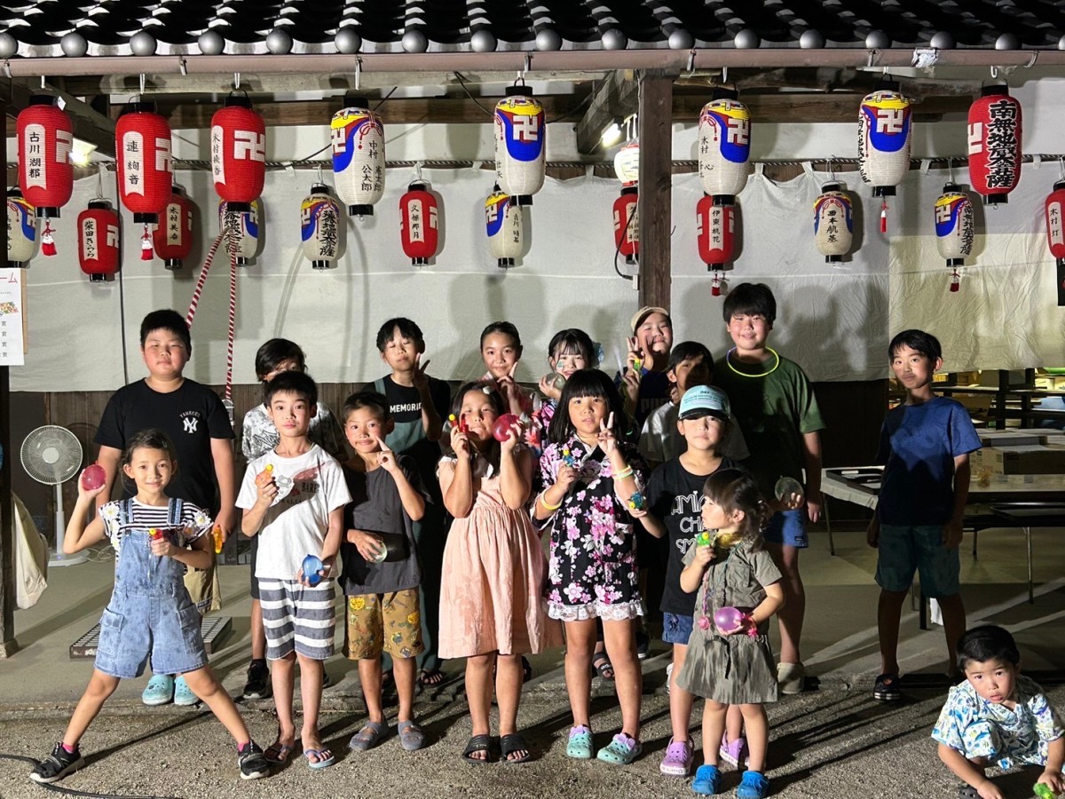 夕方、お地蔵さんの前でお参りをした後、お楽しみのゲームと打ち上げの花火、そして最後には水風船合戦をして楽しみました。