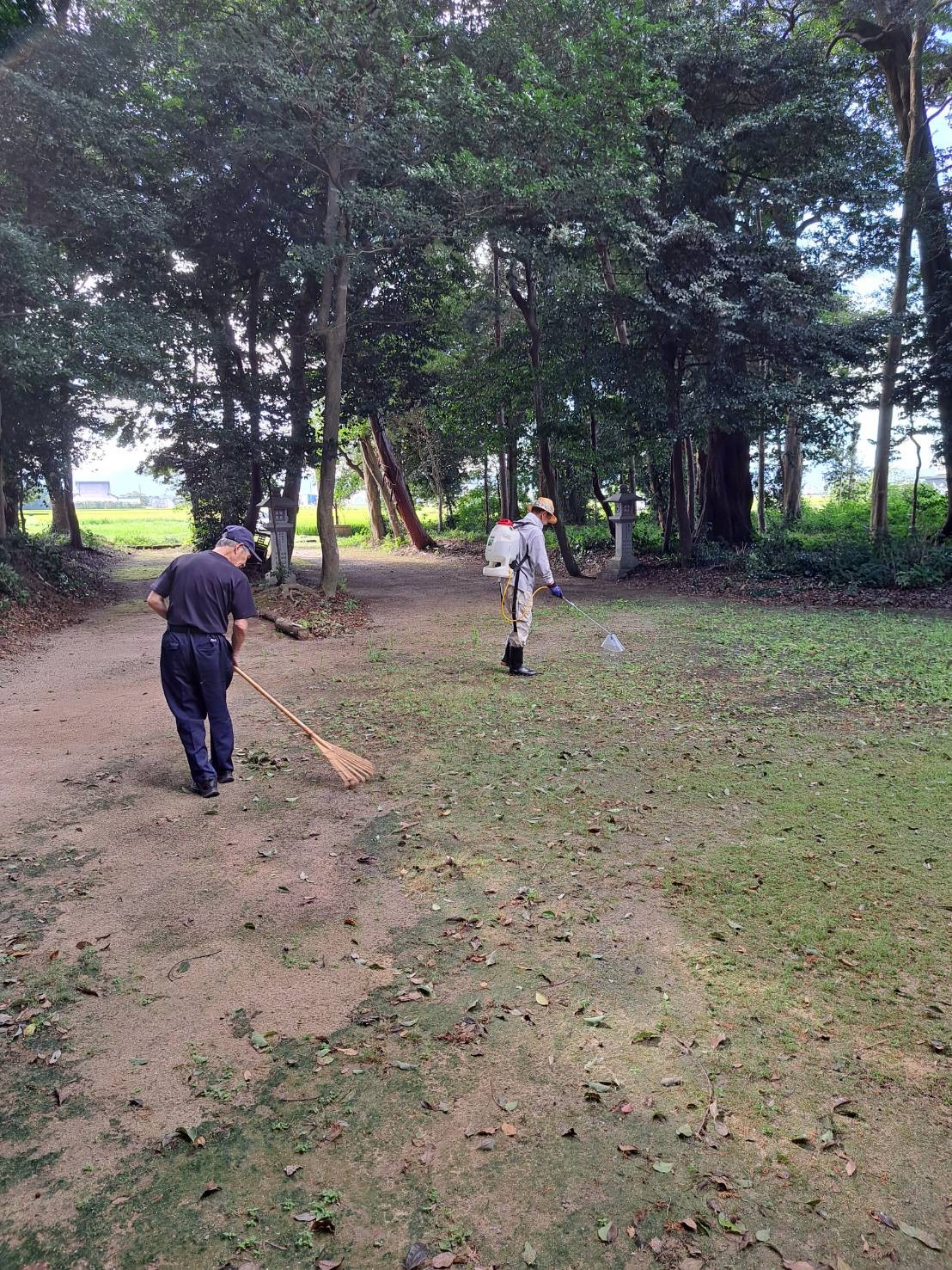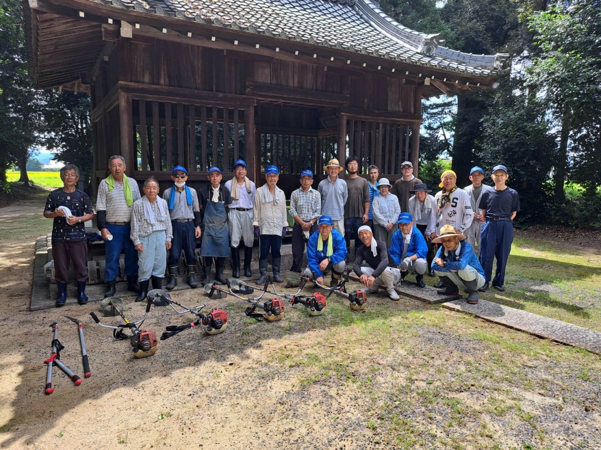 8月26日(日)に山田正八幡宮の草刈りを、町役員、子供会会長、ふるさと環境を守る会、老人クラブ、奉賛会のメンバーで行いました。