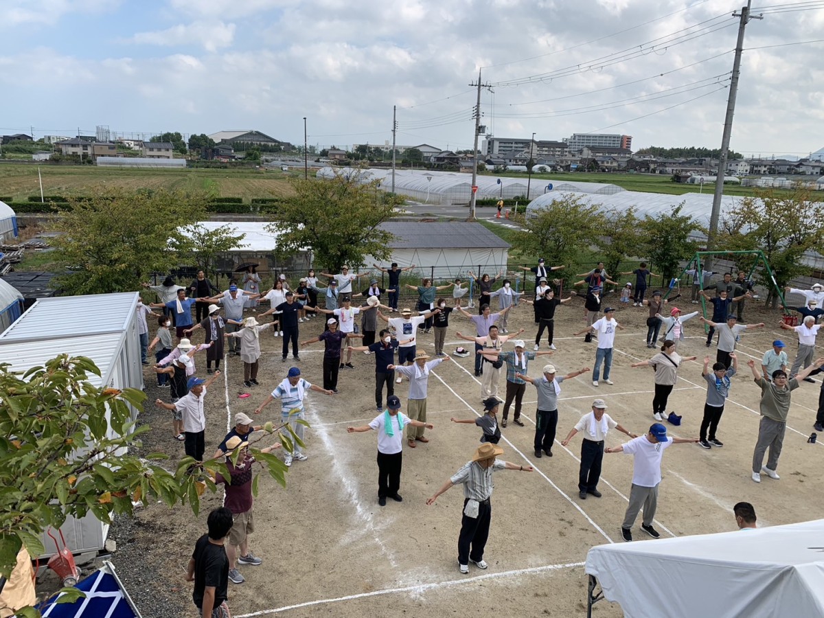 ふれあいまつりは毎回恒例の避難訓練から始まります。町内にある6つの組が組別に決められた避難場所に集まり、全員確認出来たらふれあい会館へ向けて移動します。全組が揃ったのを確認できればおまつりの始まりです。