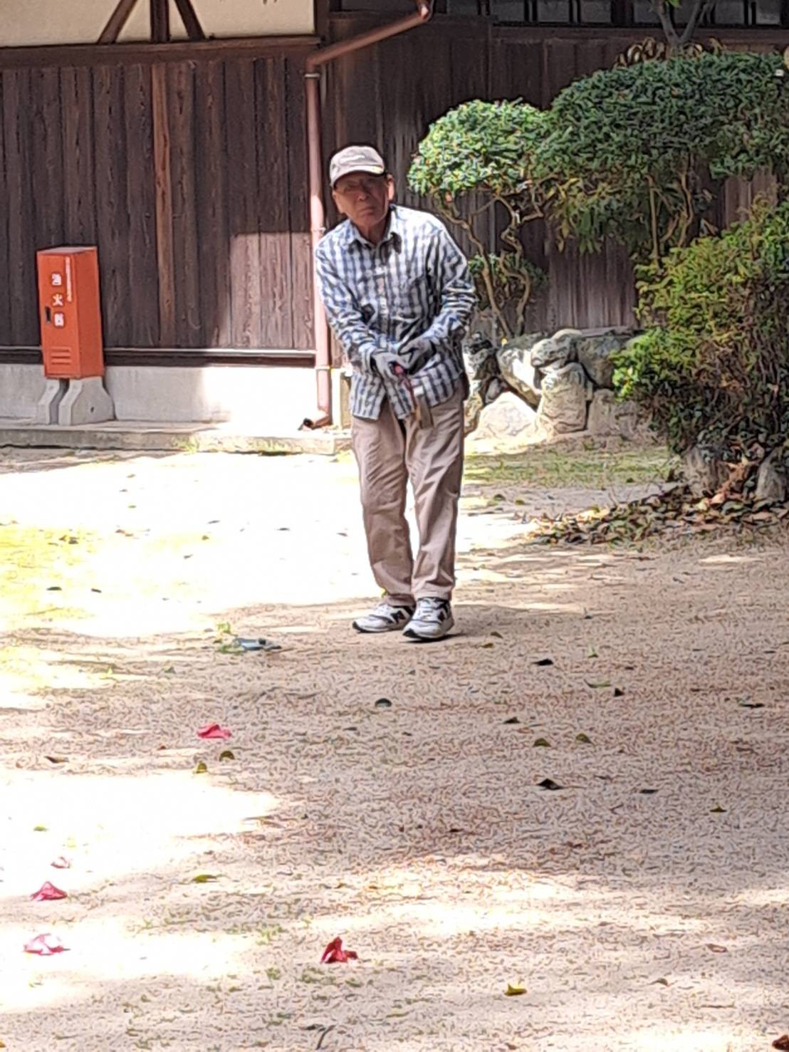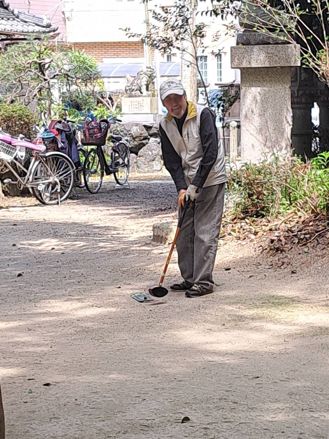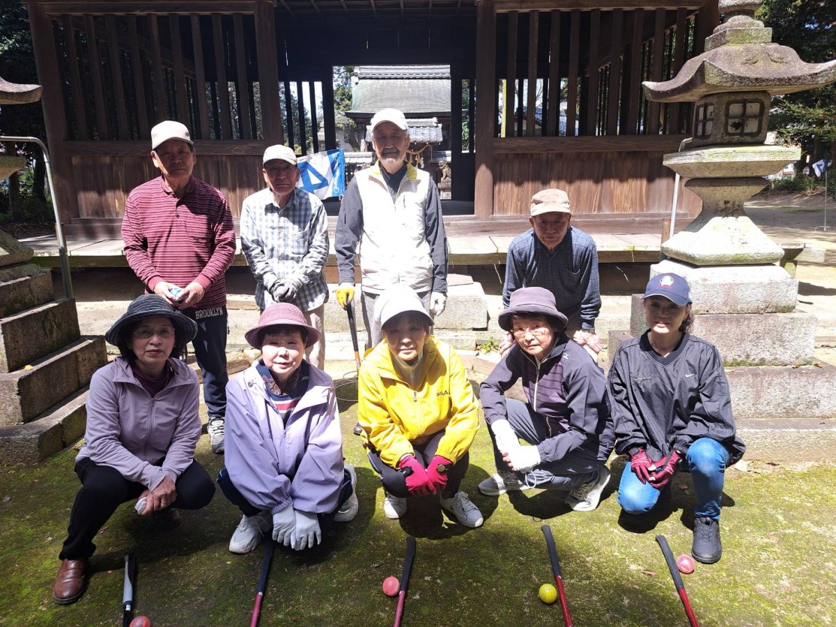 毎週火曜日と土曜日の午前中に10数名の有志メンバーが山田正八幡宮でグランドゴルフをされています。