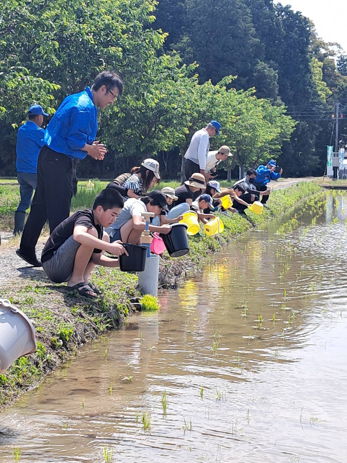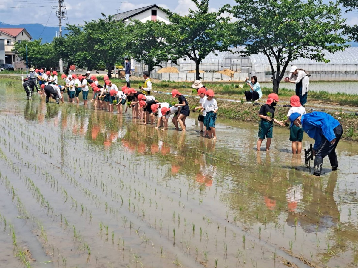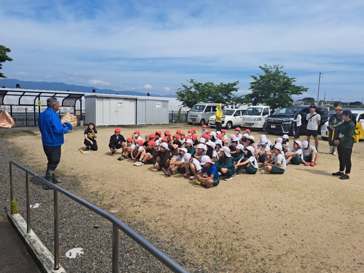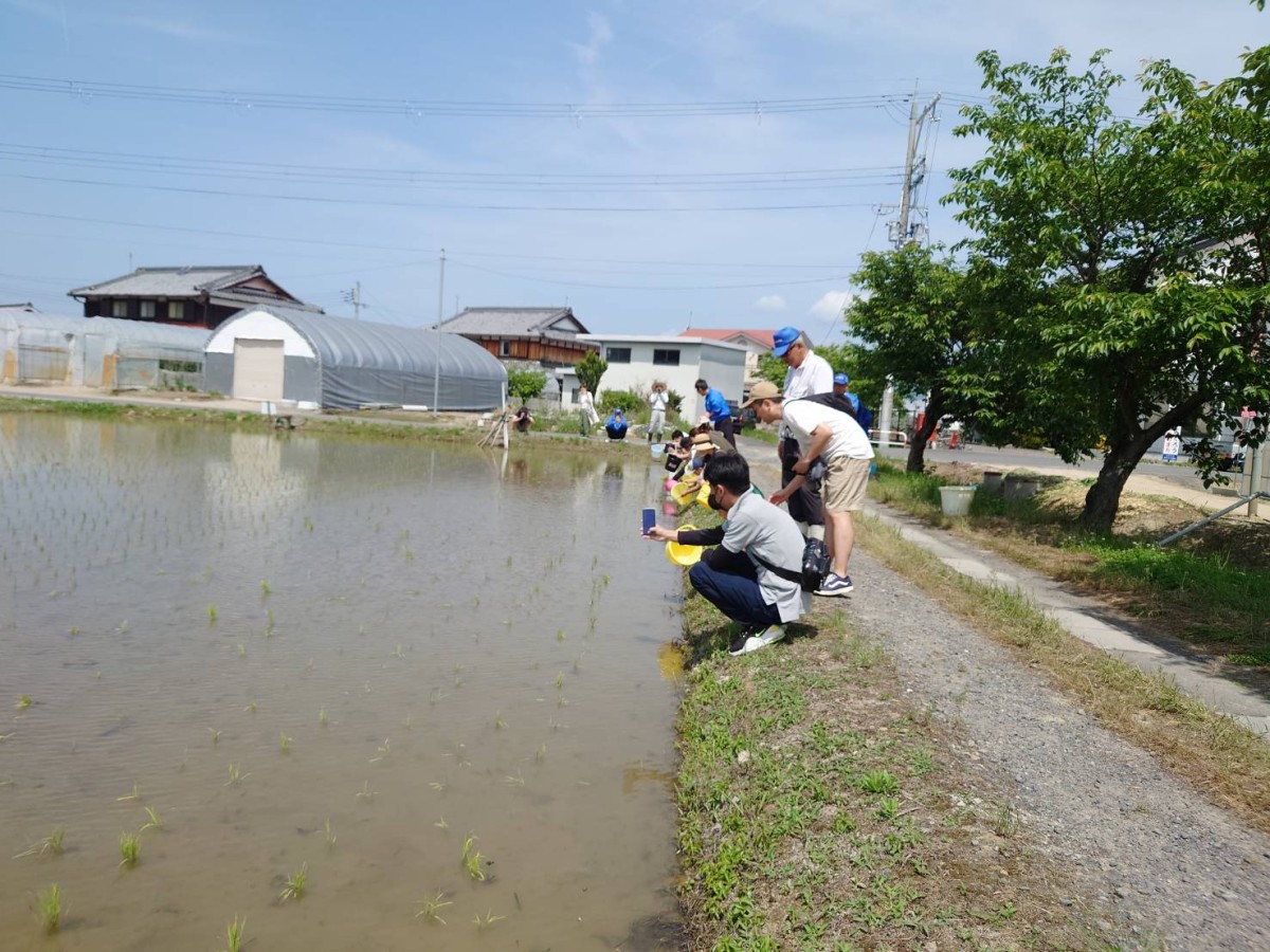 23日にはふれあい会館前の田んぼで、5年生のみんなが『田植え』を体験してくれました。みんな、慣れない田んぼの中で苦戦しながらも一つ一つ苗を植えてくれました。後日、同じ田んぼに『フナの稚魚』を放流しました。田んぼの中で大きくしてから、田んぼの水を抜く前に琵琶湖へ流します。もう少しの期間見ることが出来るので、探しに来てくださいね!