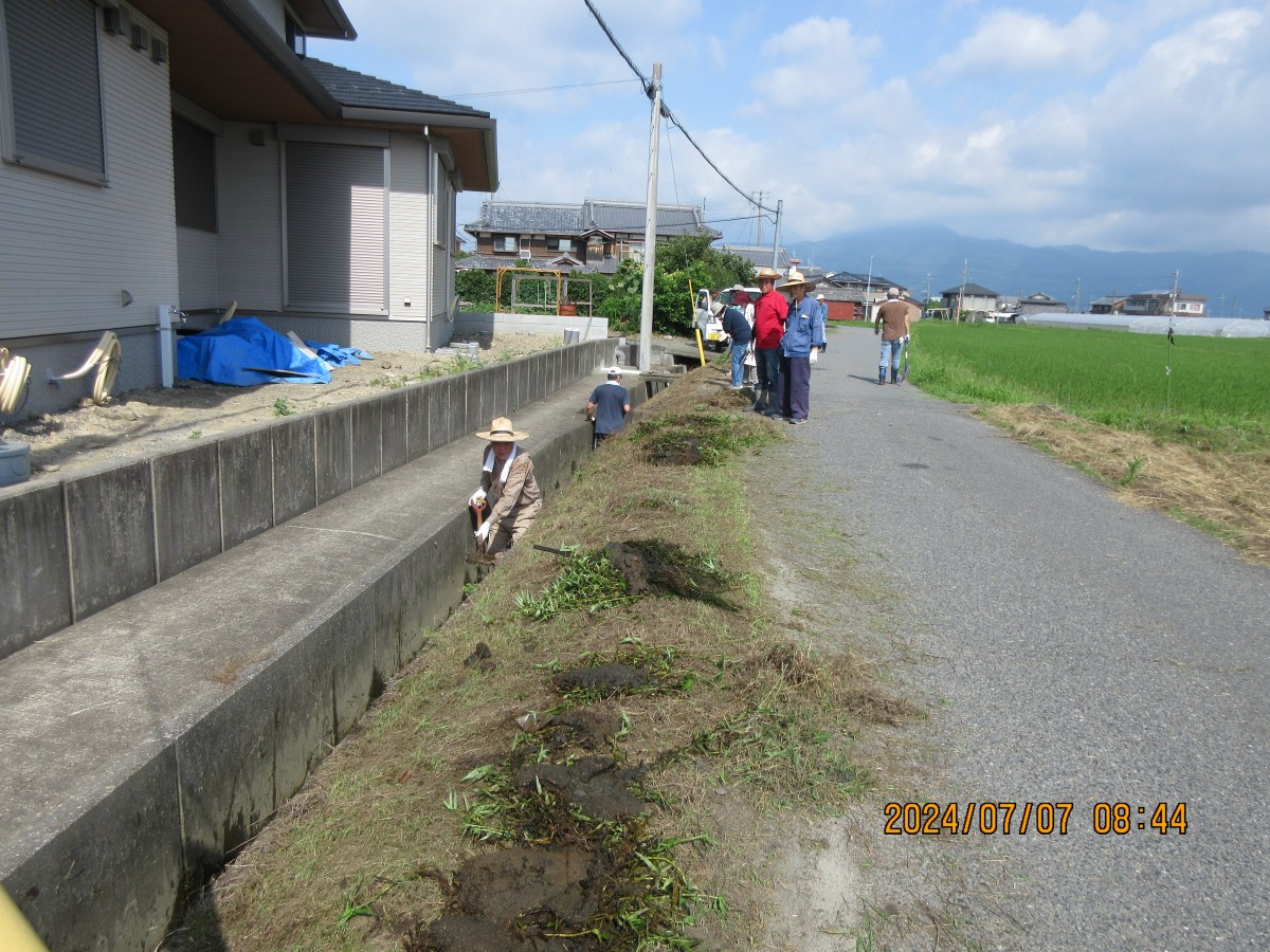 7月7日熱中症が心配されるほどの好天に恵まれた中で、「北山田町未来環境を世代につなぐ会」の事業の一環でもあります「町内の一斉清掃」を大勢の町民の参加を得て実施いたしました。作業は、各区域の側溝や水路、児童公園および田畑の水路の泥上げと除草などを行っていただきました。 幸い、強い北山田町民は、熱中症にかかることもなく、無事作業を終えることができました。