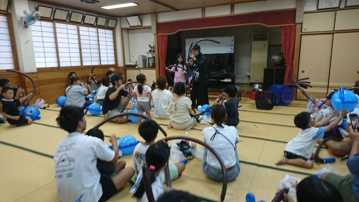 夏祭りに合わせて、子どもたちは、会館内でバルーンアートも楽しみました。
