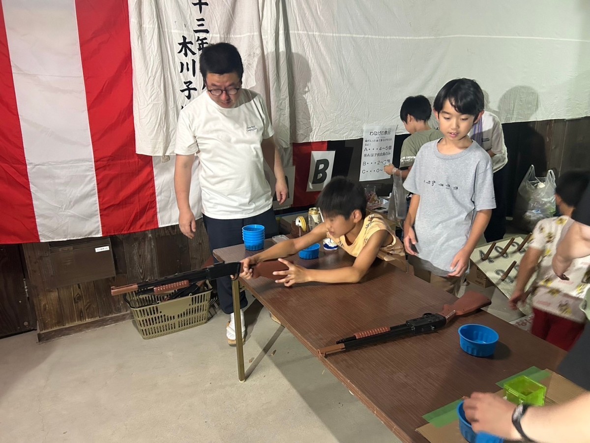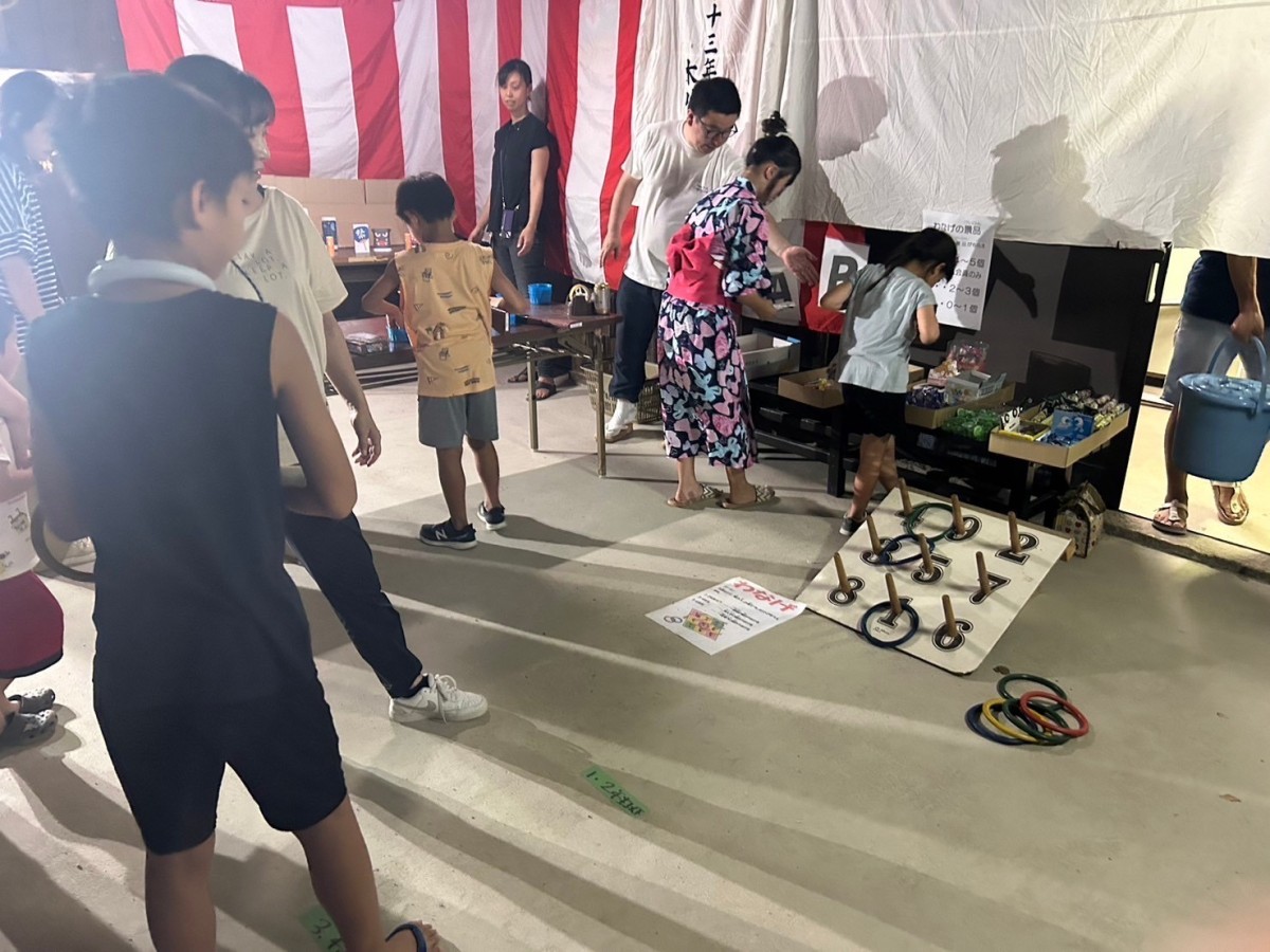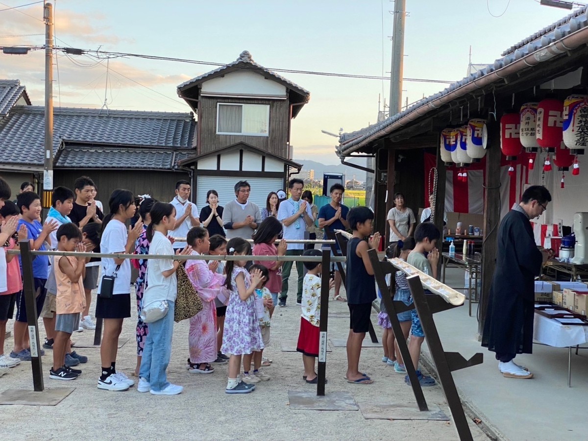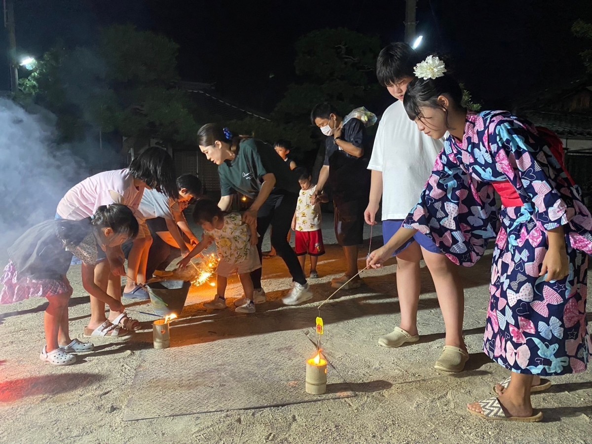 夕方、お参りをした後、お供えをしてくださった町内の方々への抽選会、子供たちはゲームや手持ち花火、そして最後には水風船合戦をして楽しみました。