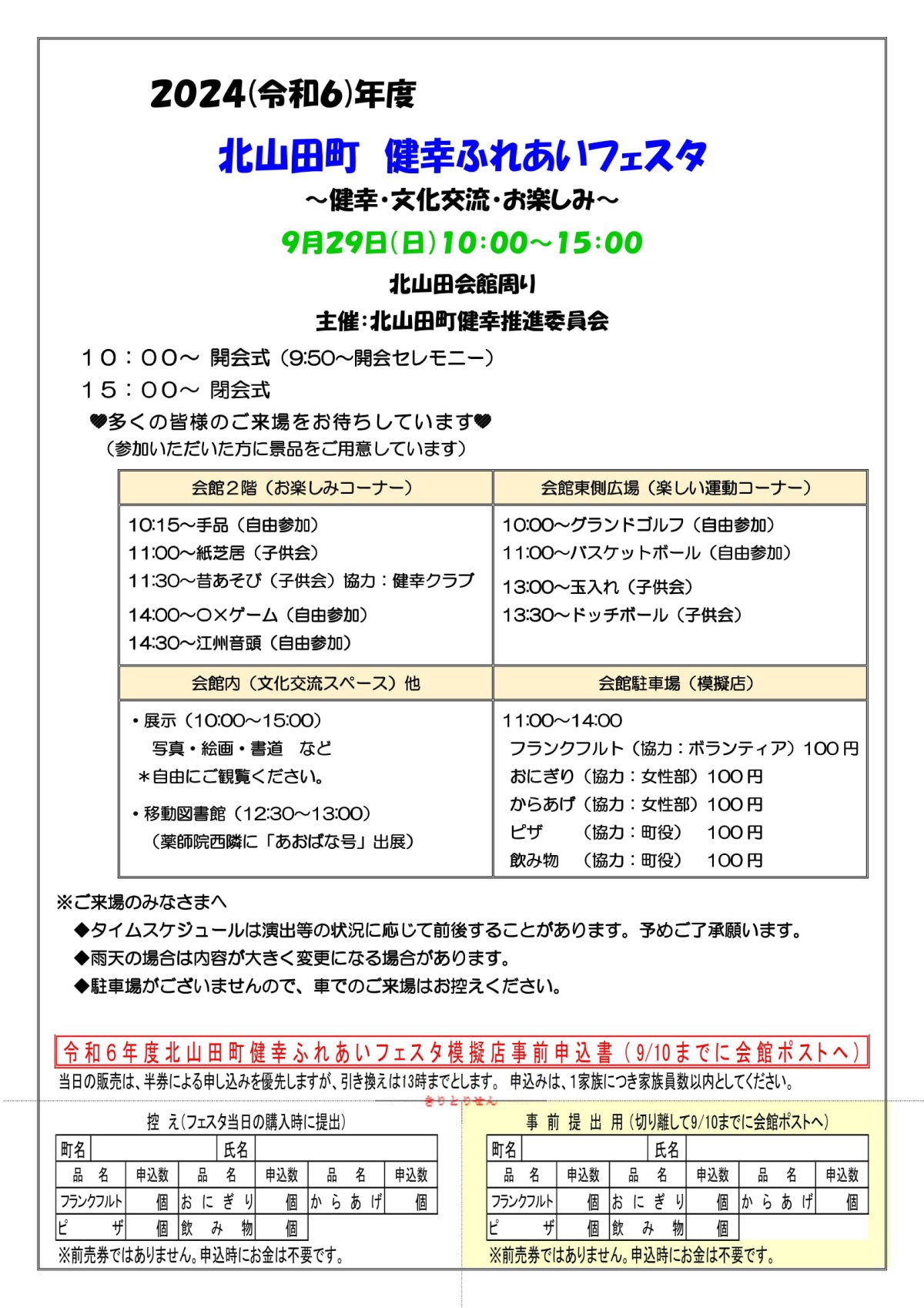 猛暑明けの曇り空の中、北山田町では健幸推進委員会が主体となって「令和6年度北山田町健幸ふれあいフェスタ」を9月29日に実施しました。