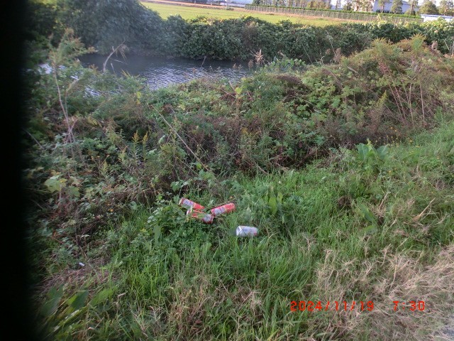 草刈りで現れたいつもの空き缶 四つ目!! たぶん飲酒運転 常習者!!