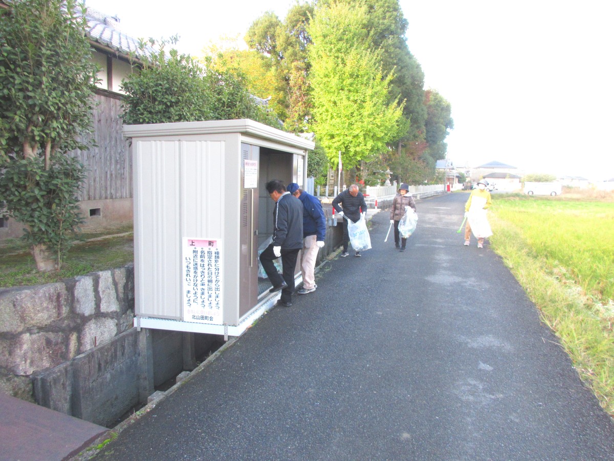 11月24日草津市内における一斉清掃(市内散在性ごみ一斉清掃)の参加活動として、北山田町内道路沿線のごみ拾い及びごみ集積所の点検並びに未回収ごみの回収作業を実施しました。