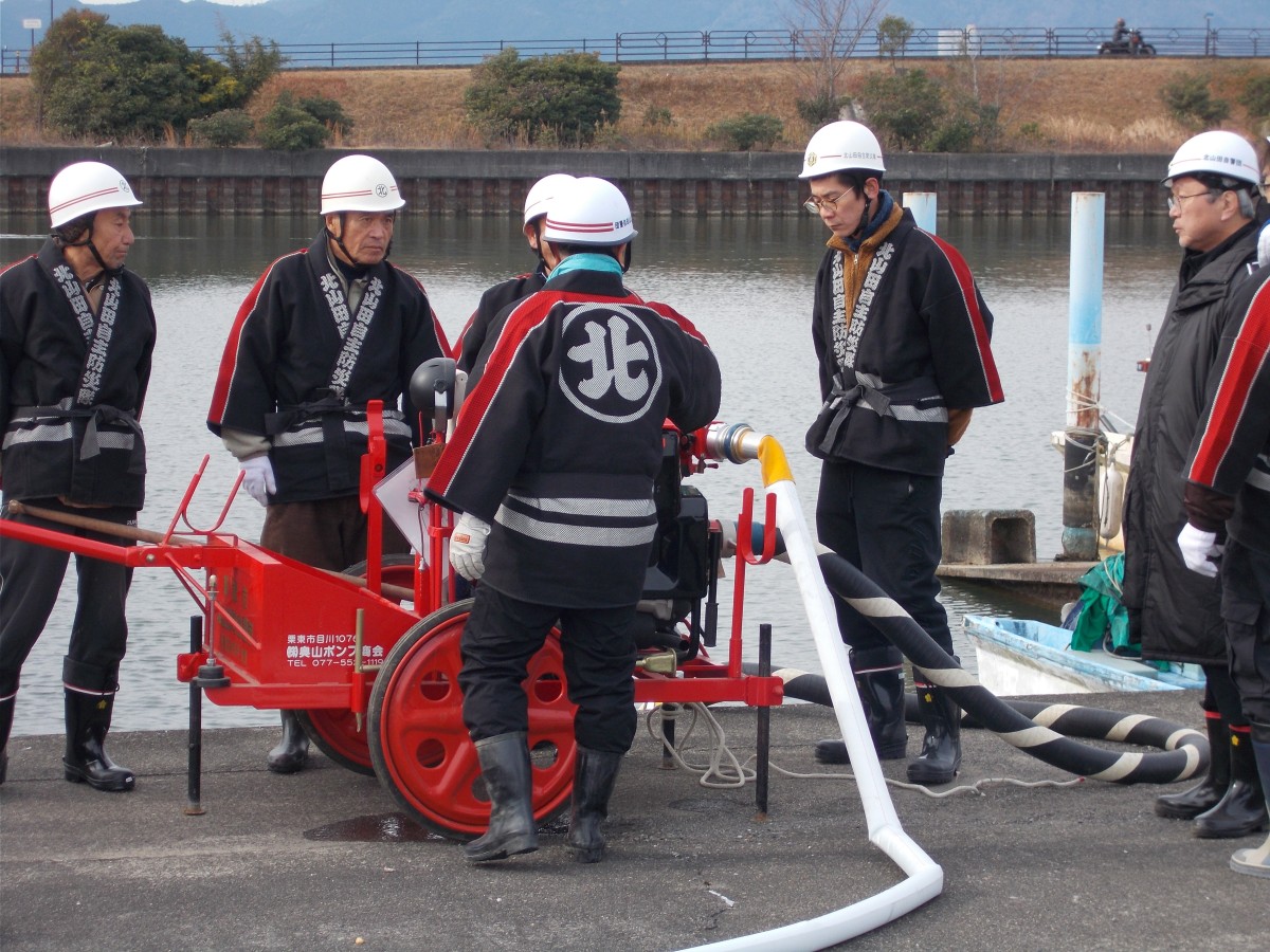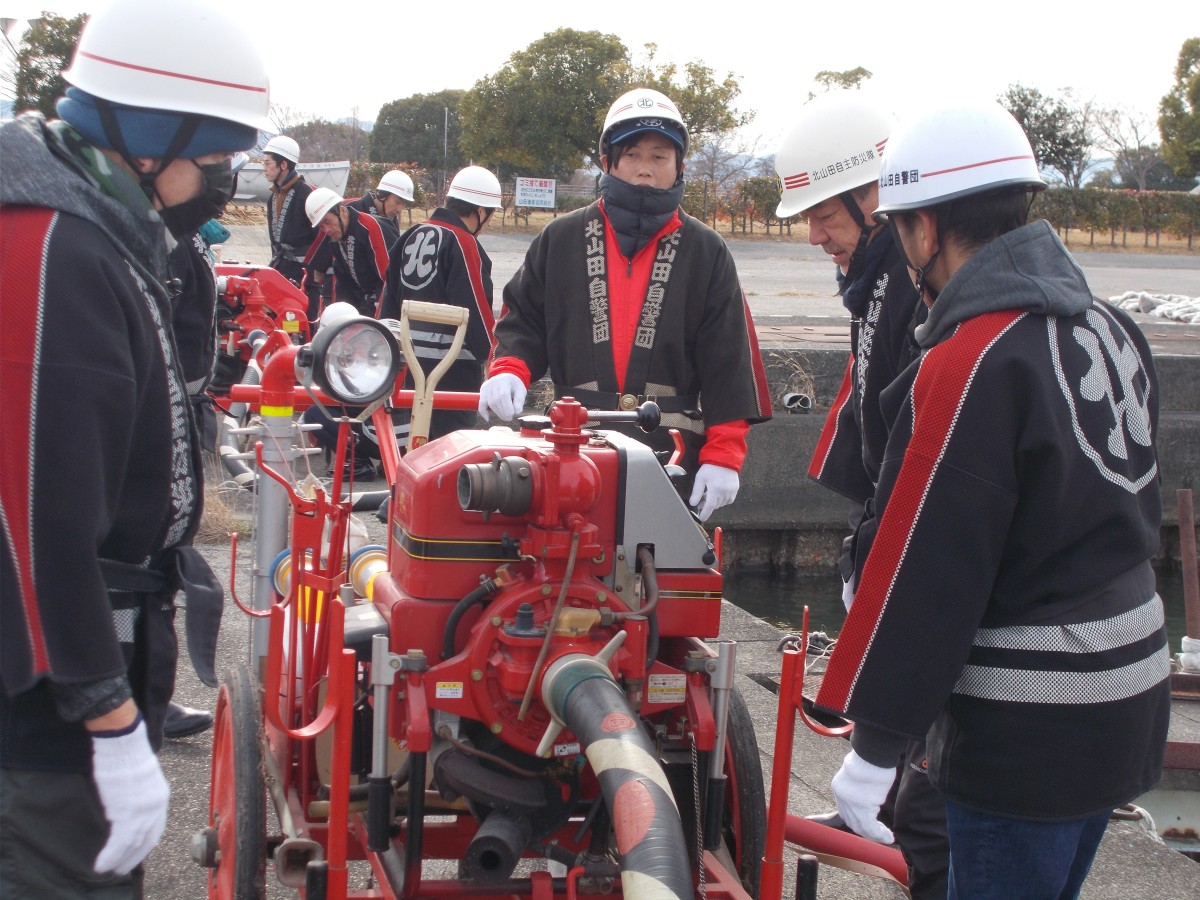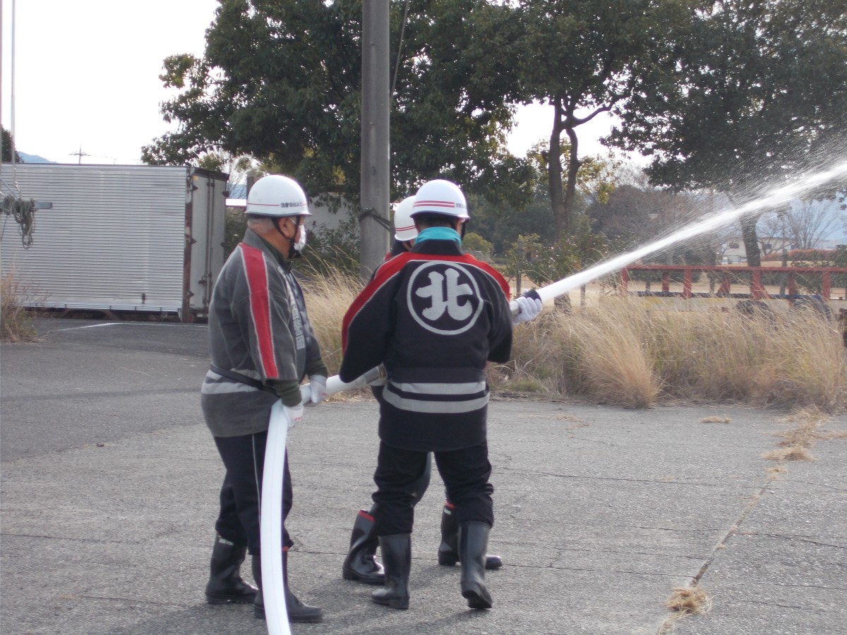この訓練は、火災の発生直後における初期段階での鎮圧が重要であるため、秋の防災訓練時と出初式に行っているものです。