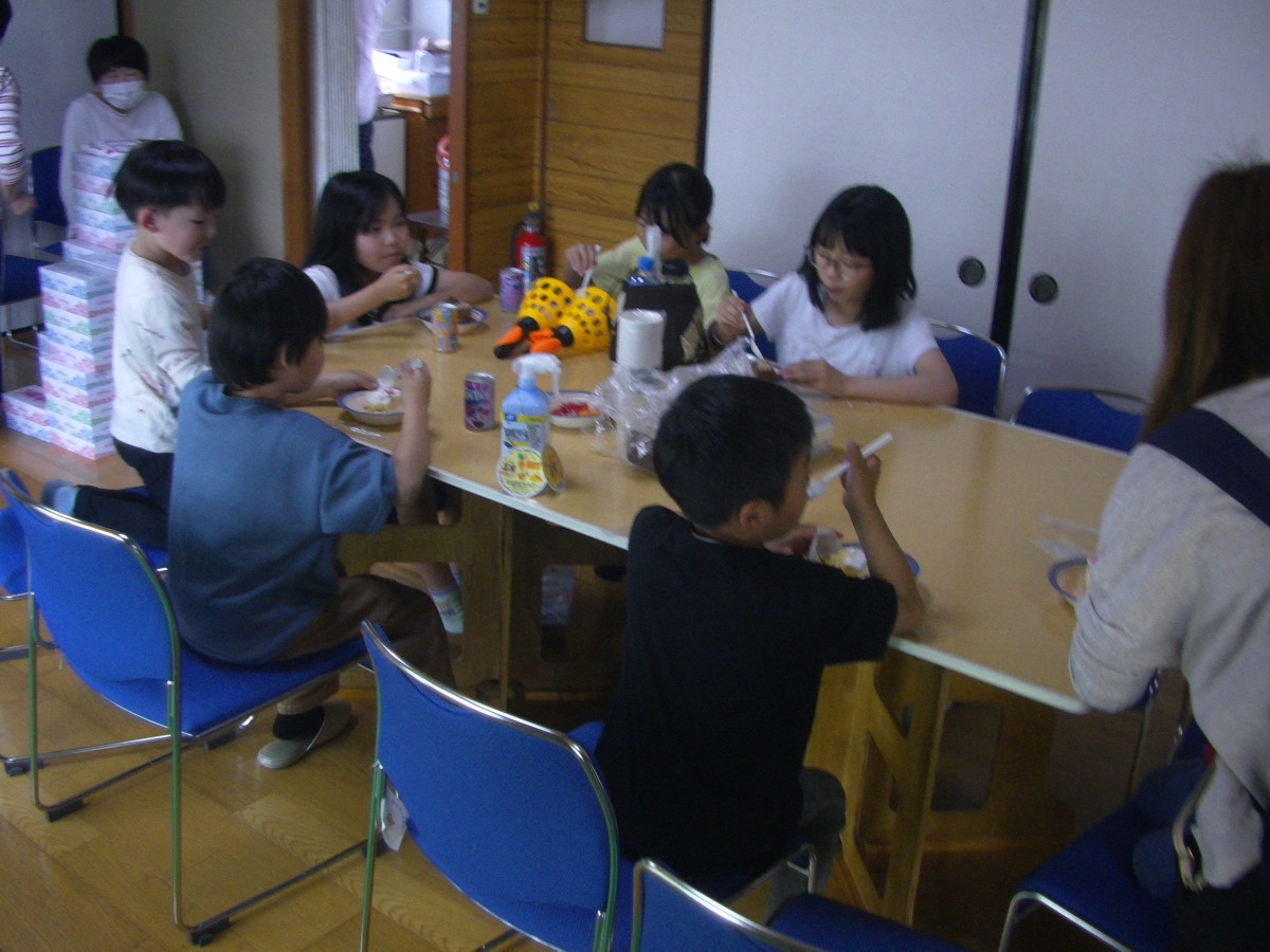 ↑集まってくれたチビッコたちも大人もみんなで『おやつ』(ケーキ)を食べました(^=^)