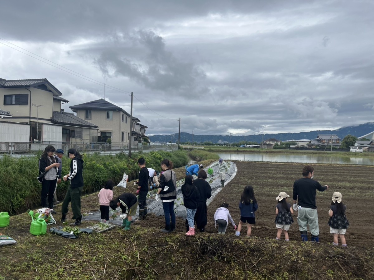 不動浜ふるさと環境をまもる会と子ども会でコスモス畑とひまわりの種まきとさつまいもの定植を実施しました。